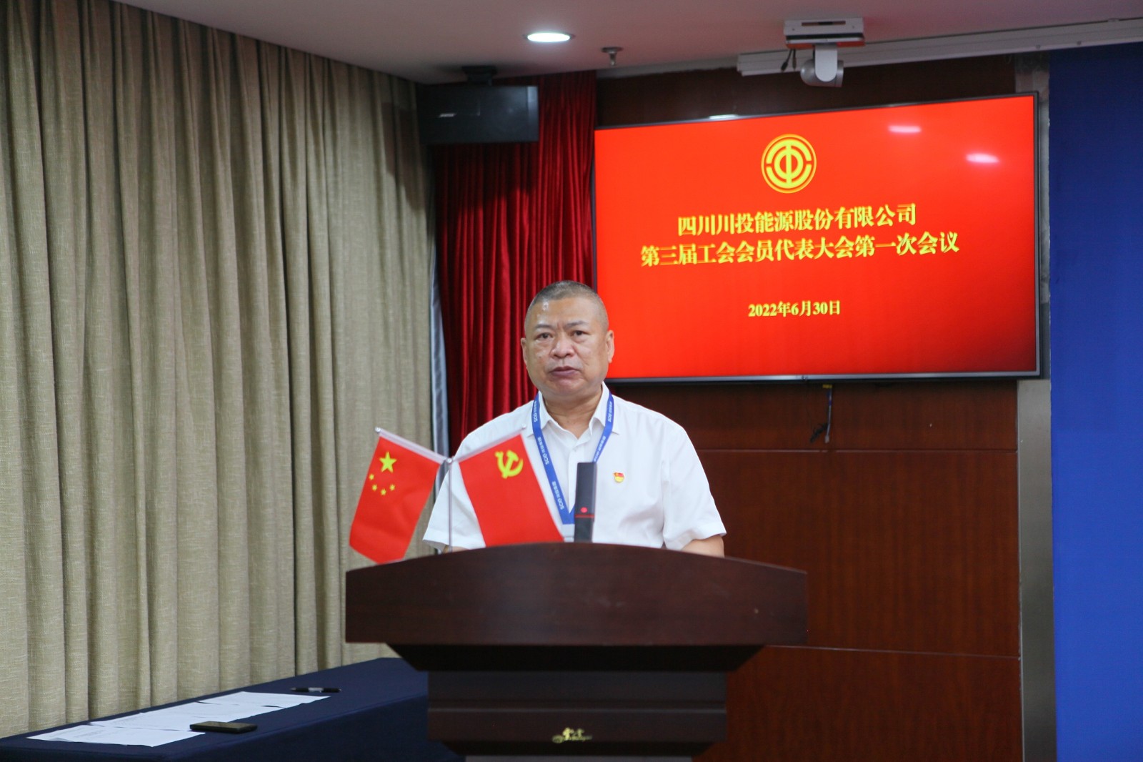 日前,公司第三屆工會(huì)會(huì)員代表大會(huì)第一次會(huì)議在601會(huì)議室隆重召開(kāi)。公司黨委書(shū)記、副董事長(zhǎng)、總經(jīng)理?xiàng)詈槌鱿瘯?huì)議并致辭。來(lái)自公司本部、川投電力、天彭電力、交大光芒、攀水電等單位的60名工會(huì)會(huì)員代表通過(guò)現(xiàn)場(chǎng)及視頻方式參加大會(huì)并進(jìn)行選舉。公司黨委副書(shū)記、工會(huì)主席冉蘭平主持大會(huì)。
