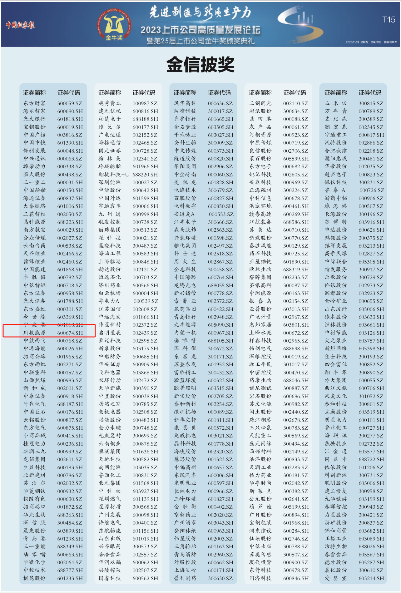 11月24日,由中國證券報主辦的“第二十五屆上市公司金牛獎”榜單揭曉,川投能源憑借穩(wěn)健增長的業(yè)績、不斷提升的綜合實力和高質量的信息披露,榮獲“2022年度金信披獎”。