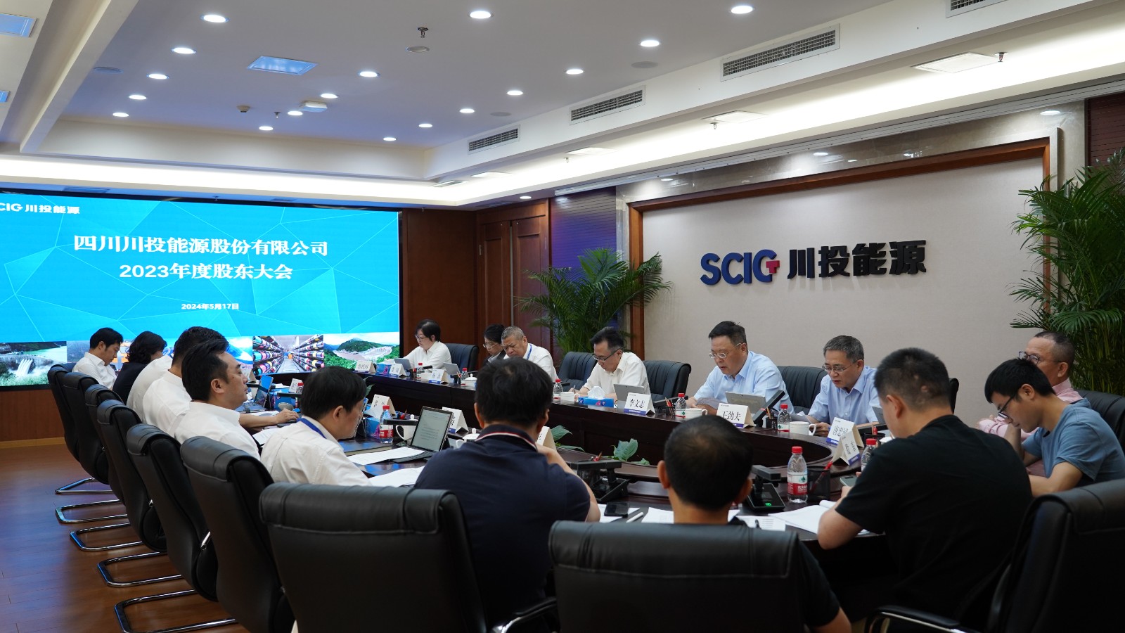5月17日上午,川投能源采用現(xiàn)場(chǎng)和網(wǎng)絡(luò)方式在川投大廈1508會(huì)議室召開了2023年度股東大會(huì),董事長(zhǎng)吳曉曦主持會(huì)議。現(xiàn)場(chǎng)投票方式參加本次股東大會(huì)的股東或股東代表共13名,合計(jì)持有和代表股份2,401,545,576股,占公司總股份的49.27%;網(wǎng)絡(luò)投票方式參加本次股東大會(huì)的股東及股東代理人共47人,合計(jì)所持股份數(shù)為655,852,621股,占公司總股份的13.45%。公司5名董事出席會(huì)議,2名監(jiān)事、5名高管列席會(huì)議。大成律師事務(wù)所律師列席會(huì)議進(jìn)行見證,并對(duì)參會(huì)股東資格和會(huì)議召開程序等進(jìn)行了審查,出具了法律意見書。