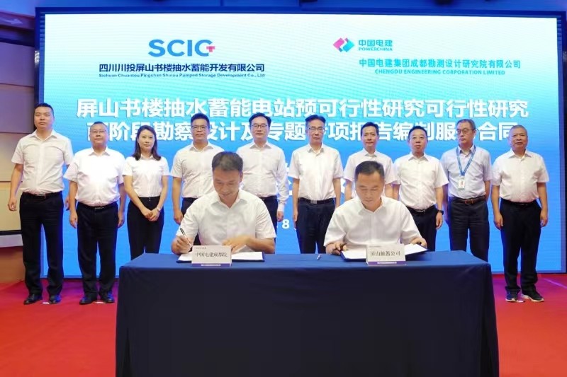8月26日,川投能源所屬四川川投屏山書樓抽水蓄能開發(fā)有限公司(以下簡(jiǎn)稱“川投屏山抽蓄公司”)與中國電建集團(tuán)成都勘測(cè)設(shè)計(jì)研究院有限公司(以下簡(jiǎn)稱“中國電建成都院”)在成都舉行《屏山書樓抽水蓄能電站預(yù)可行性研究、可行性研究?jī)呻A段勘察設(shè)計(jì)及專題專項(xiàng)報(bào)告編制服務(wù)合同》簽約儀式。川投集團(tuán)黨委書記、董事長(zhǎng),川投能源董事長(zhǎng)吳曉曦,中國電建成都院黨委書記、董事長(zhǎng)何彥鋒出席并見證簽約;川投集團(tuán)副總經(jīng)理張昊,中國電建成都院黨委委員、副總經(jīng)理趙曉峰出席并致辭;川投集團(tuán)副總經(jīng)理肖長(zhǎng)青出席并主持儀式。