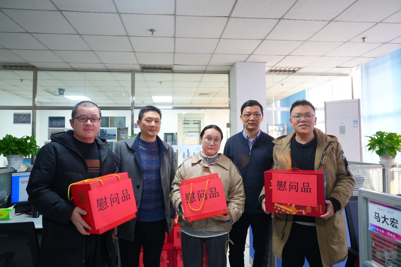考核結(jié)束后,冉蘭平一行來到交大光芒研發(fā)中心,與研發(fā)人員親切交談,了解研發(fā)項目進展情況,鼓勵研發(fā)人員以創(chuàng)新思維破解難題,走好科技自立自強之路,并為他們送上慰問品和誠摯的新春祝福。