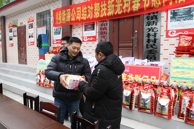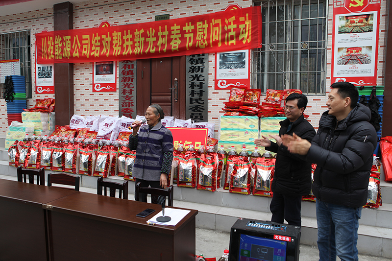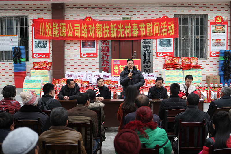 慰問現(xiàn)場(chǎng),冉書記代表公司黨委和全體員工,對(duì)新光村父老鄉(xiāng)親表示誠(chéng)摯的新春祝福和問候。冉書記指出,黨的十九大吹響了全面消滅貧困、實(shí)現(xiàn)小康號(hào)角,經(jīng)過幾年的努力,川投能源對(duì)口幫扶村面貌煥然一新,這得益于黨和國(guó)家的好政策,得益于扶貧干部和當(dāng)?shù)卮甯刹康墓餐?,得益于廣大鄉(xiāng)親父老的勤勞、智慧和汗水。接下來,川投能源將繼續(xù)深入貫徹中央、省委及集團(tuán)公司精準(zhǔn)脫貧精神,創(chuàng)新扶貧工作思路,提高幫扶工作標(biāo)準(zhǔn),立足實(shí)際,努力為幫扶村群眾辦更多的實(shí)事、好事,以優(yōu)異的工作業(yè)績(jī)喜迎新中國(guó)成立70周年。