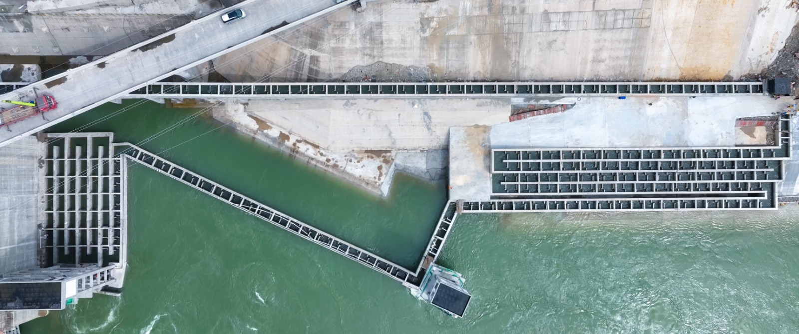 魚道全長(zhǎng)約1003米,設(shè)有3個(gè)進(jìn)口和1個(gè)出口,進(jìn)口與出口之間最大落差為18米。施工設(shè)計(jì)方面,通過獨(dú)特的隔板、側(cè)室板等結(jié)構(gòu),減緩水流速度,形成一個(gè)個(gè)“緩流區(qū)”,如同為魚兒們?cè)O(shè)置的“休息驛站”,讓它們?cè)阡в瓮局械靡苑e蓄力量。為了吸引更多魚類進(jìn)入魚道洄游,工作人員在3個(gè)進(jìn)口處設(shè)置了補(bǔ)水系統(tǒng),調(diào)整水流速度,誘導(dǎo)魚類上溯洄游。此外,魚道還配備了高科技監(jiān)測(cè)設(shè)備,可實(shí)時(shí)掌握魚類的動(dòng)向,及時(shí)調(diào)整魚道運(yùn)行參數(shù),確保魚兒順利通過。