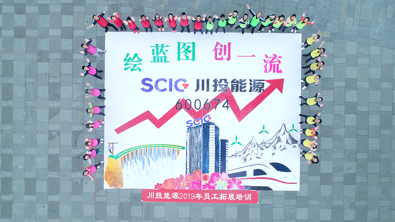 為保障素質(zhì)拓展順利開展,公司認(rèn)真組織、精心籌備,旨在加深提煉公司企業(yè)文化理念,加速新老員工溝通磨合,加強(qiáng)隊(duì)伍協(xié)作互信。培訓(xùn)過程中,全體參訓(xùn)人員被隨機(jī)分成四組,大家定隊(duì)名、呼口號(hào)、唱隊(duì)歌,一一展示團(tuán)隊(duì)風(fēng)采,個(gè)個(gè)激情滿懷、斗志昂揚(yáng)?;顒?dòng)中大家團(tuán)結(jié)協(xié)作、你追我趕、奮力拼搏、難分伯仲,其中最振奮人心的項(xiàng)目是“共繪藍(lán)圖”。隊(duì)員們分別在四塊畫布上勾勒、設(shè)計(jì)、涂色,有的負(fù)責(zé)統(tǒng)籌安排,有的負(fù)責(zé)色彩調(diào)配,有的負(fù)責(zé)勾勒初描,有的負(fù)責(zé)著色上色,大伙兒熱火朝天,忙得不亦樂乎。當(dāng)我們親手繪制的四塊畫布首尾相接拼裝成整幅“藍(lán)圖”的剎那,大家不禁歡呼雀躍起來:首先躍入眼簾的是象征川投能源股票長(zhǎng)紅的紅色箭頭,以及“川投能源”LOGO和股票代碼;畫布正上方醒目的“繪藍(lán)圖、創(chuàng)一流”標(biāo)語亮出了此次活動(dòng)主題和企業(yè)愿景;畫布正中央是高高聳立的川投大廈,四周花團(tuán)錦簇,象征著各所屬公司在川投集團(tuán)領(lǐng)導(dǎo)下百花齊放、大放異彩。畫布四周還有雄偉的水電大壩,高速前行的“復(fù)興號(hào)”,象征新能源的風(fēng)力發(fā)電機(jī)組……那一刻,我們仿佛看到了川投能源創(chuàng)西部一流的愿景已躍然紙上,“千億川投”的宏偉畫卷正徐徐展開。