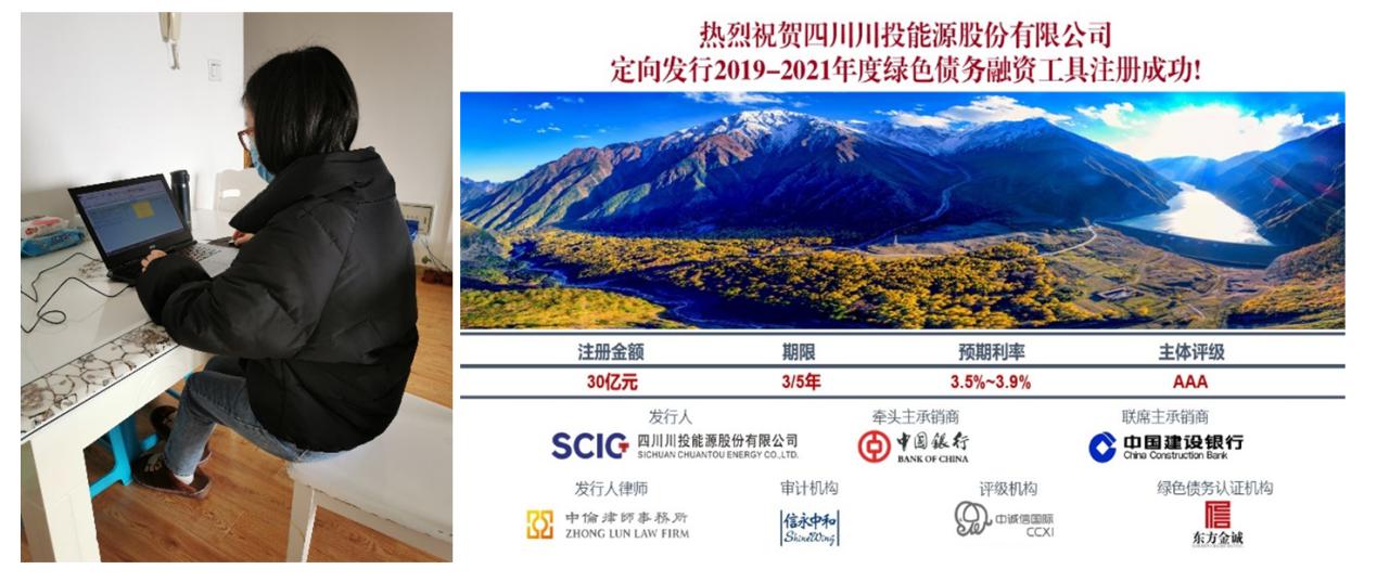 疫情期間,秦乙可需要每天不定時守在電腦前,沒有周內(nèi)周末之分,領(lǐng)導(dǎo)、同事、事務(wù)所、中介、銀行等等,什么時候需要資料、數(shù)據(jù),她便及時按要求提供。無論是私募債注冊資料提供,還是月度報表數(shù)據(jù)上報與財務(wù)分析,或者川投能源資金結(jié)算中心運營的推進、2019年度審計資料的提供,均通過遠程辦公方式順利完成。