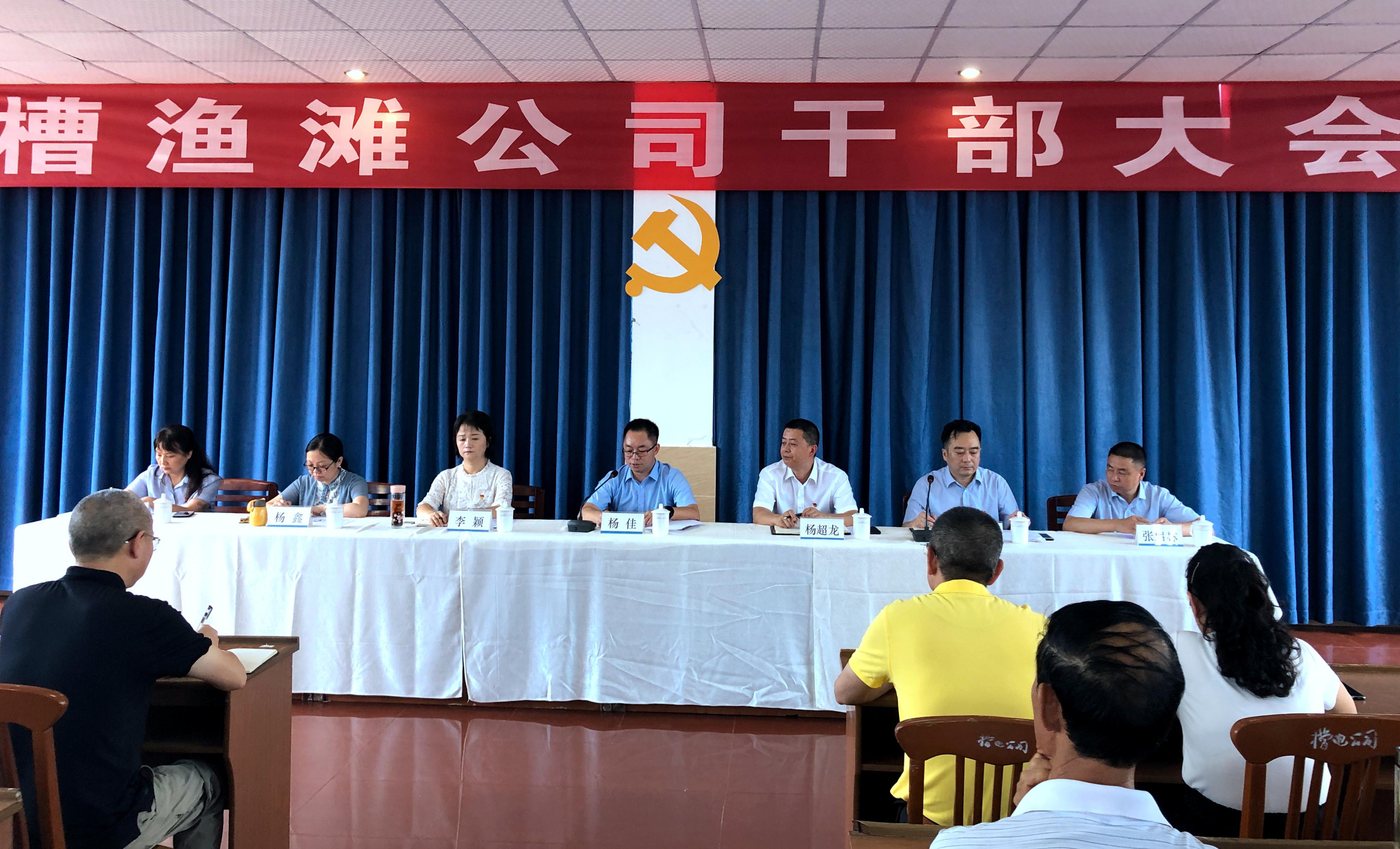 8月6日上午,川投能源所屬川投電力控股槽漁灘公司召開干部大會,洪雅縣國有企業(yè)黨委副書記、縣國資金融中心主任楊佳、川投能源黨委副書記、工會主席楊超龍出席會議并講話,會議由槽漁灘公司董事長楊濤主持,國資金融中心副主任李穎、川投能源黨群部主任楊鑫,公司中層以上干部參加會議。