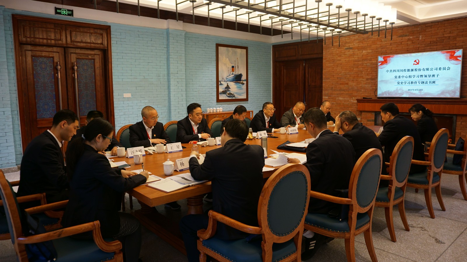 4月22日上午10:30,川投能源在川投嘉陽黨性教育基地會議室舉辦黨委中心組學(xué)習(xí)暨黨員領(lǐng)導(dǎo)班子成員黨史學(xué)習(xí)教育專題讀書班,以領(lǐng)導(dǎo)班子成員先學(xué)一步、深學(xué)一層的生動形式,深入貫徹落實(shí)習(xí)近平總書記在黨史學(xué)習(xí)教育動員大會上的重要講話精神,帶頭引導(dǎo)公司廣大黨員干部學(xué)黨史、悟思想、辦實(shí)事、開新局,推動黨史學(xué)習(xí)教育不斷往深里走、往實(shí)里走。