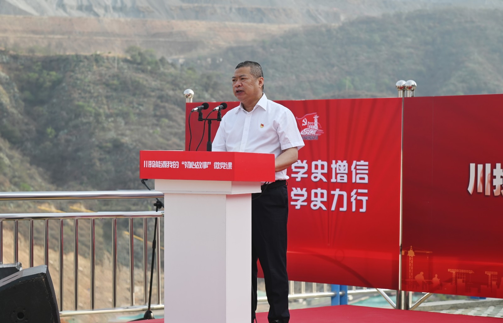 5月19日上午,川投能源“我的初心故事”微黨課巡講團(tuán)首站來(lái)到銀江水電站工地現(xiàn)場(chǎng),為攀水電及各參建單位黨員代表100余人帶來(lái)了一場(chǎng)紅色勵(lì)志的“視聽(tīng)盛宴”。公司黨委書(shū)記、副董事長(zhǎng)、總經(jīng)理?xiàng)詈椋h委副書(shū)記、工會(huì)主席楊超龍,副總經(jīng)理、攀水電公司黨總支書(shū)記、董事長(zhǎng)徐孝剛及各參建單位負(fù)責(zé)人參加現(xiàn)場(chǎng)巡講。