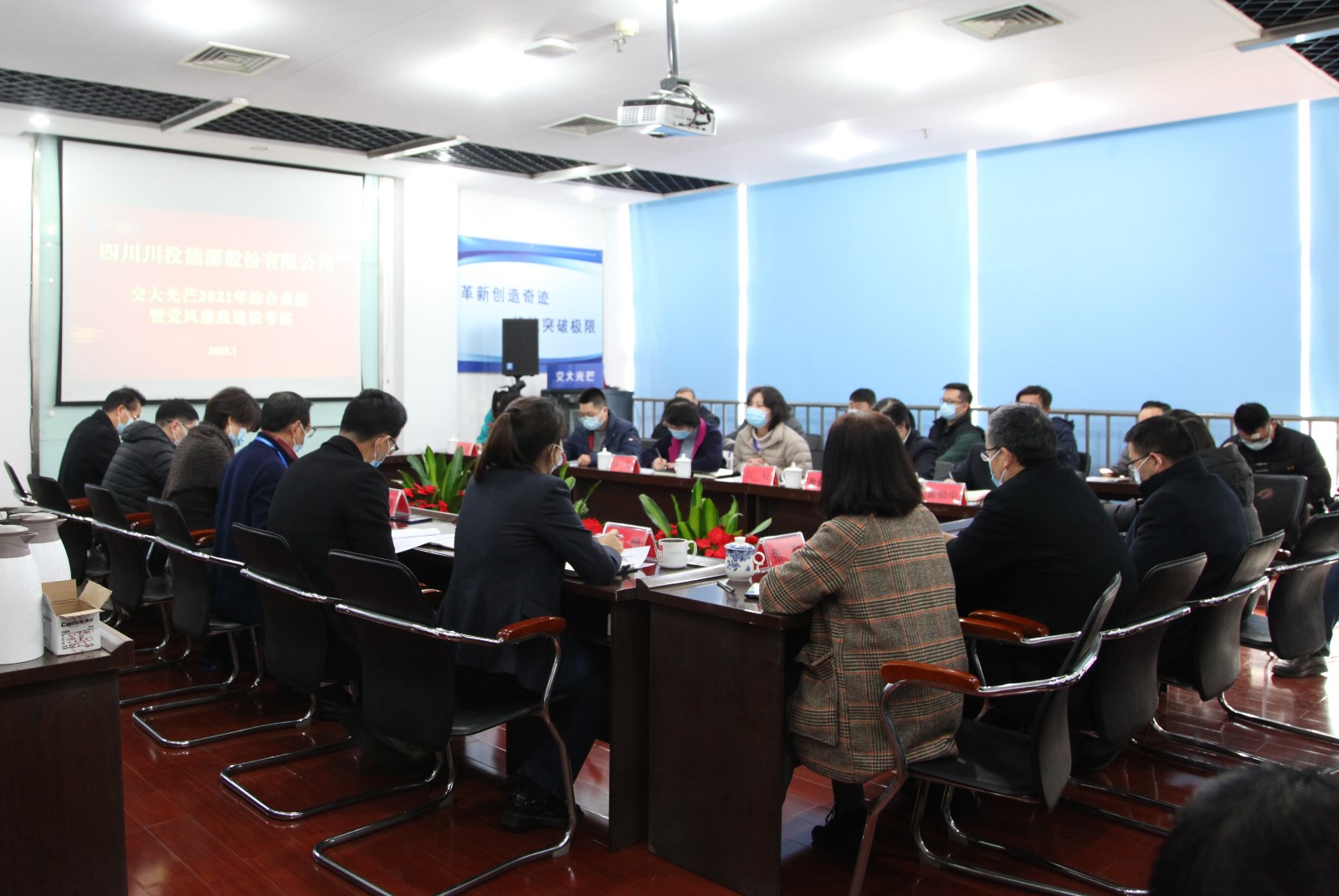 根據(jù)川投能源2021年度考核工作的統(tǒng)一部署,1月11日,川投能源黨委委員、財(cái)務(wù)總監(jiān)、考核組長(zhǎng)劉好率隊(duì)赴交大光芒開(kāi)展2021年度綜合業(yè)績(jī)暨黨風(fēng)廉政建設(shè)考核工作。川投能源考核組、交大光芒經(jīng)營(yíng)班子、中層副職以上管理人員及一線員工代表參加考核會(huì),川投能源證券事務(wù)部、資本運(yùn)營(yíng)部經(jīng)理魯晉川主持會(huì)議。