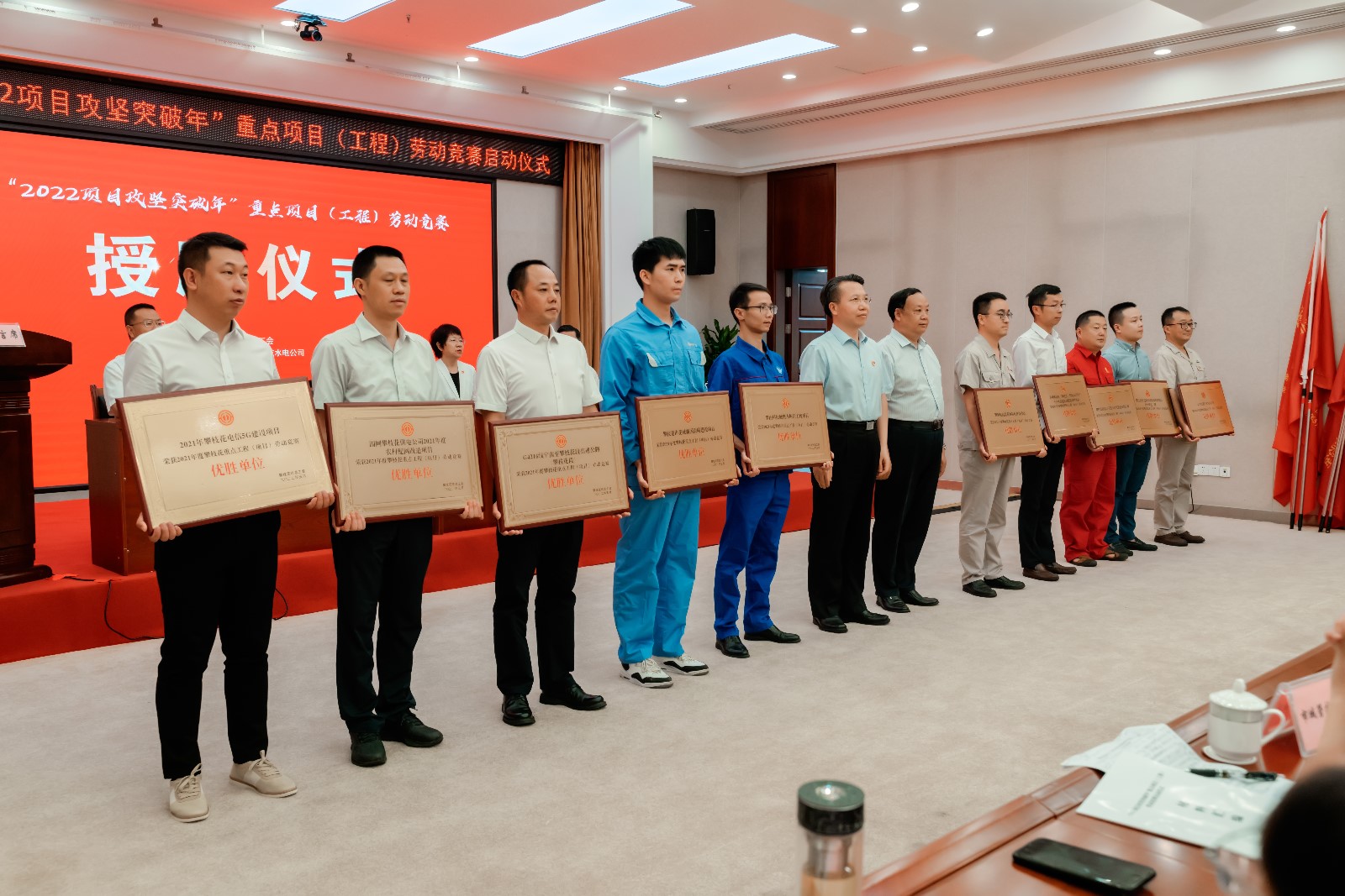 啟動(dòng)儀式上,市總工會(huì)授予金沙江銀江水電站等項(xiàng)目(工程)為“2021年度攀枝花市重點(diǎn)項(xiàng)目(工程)勞動(dòng)競(jìng)賽優(yōu)勝單位”稱號(hào),并為金沙江銀江水電站等“2022項(xiàng)目攻堅(jiān)突破年”重點(diǎn)項(xiàng)目(工程)授旗,鼓舞大家加速建設(shè)、實(shí)現(xiàn)突破、取得實(shí)效。