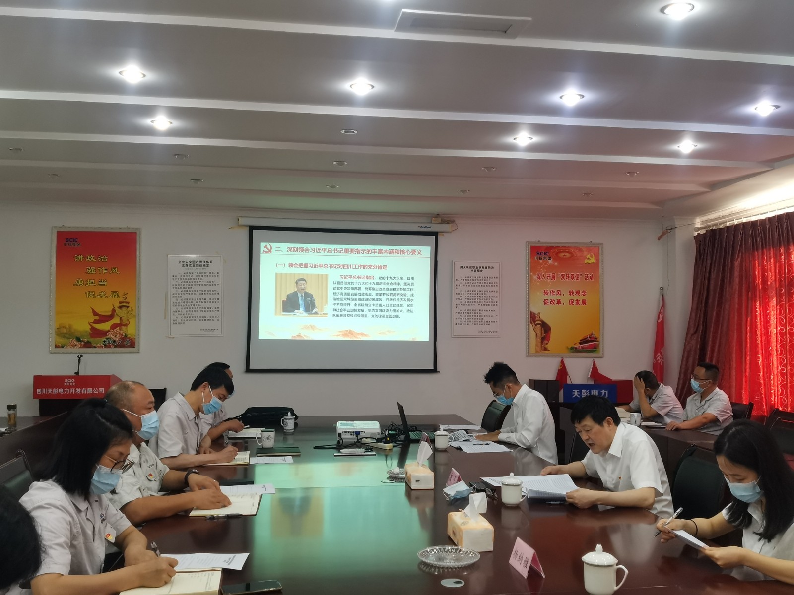 為迅速落實上級黨委有關(guān)學(xué)習(xí)宣傳貫徹的部署和要求,7月8日,川投能源黨委委員、副總經(jīng)理、總法律顧問楊平率隊赴天彭電力,專題宣講習(xí)近平總書記來川視察重要指示精神暨省第第二次黨代會精神。川投能源審計部副經(jīng)理楊納雅、川投能源黨群工作部李睿參加宣講活動。