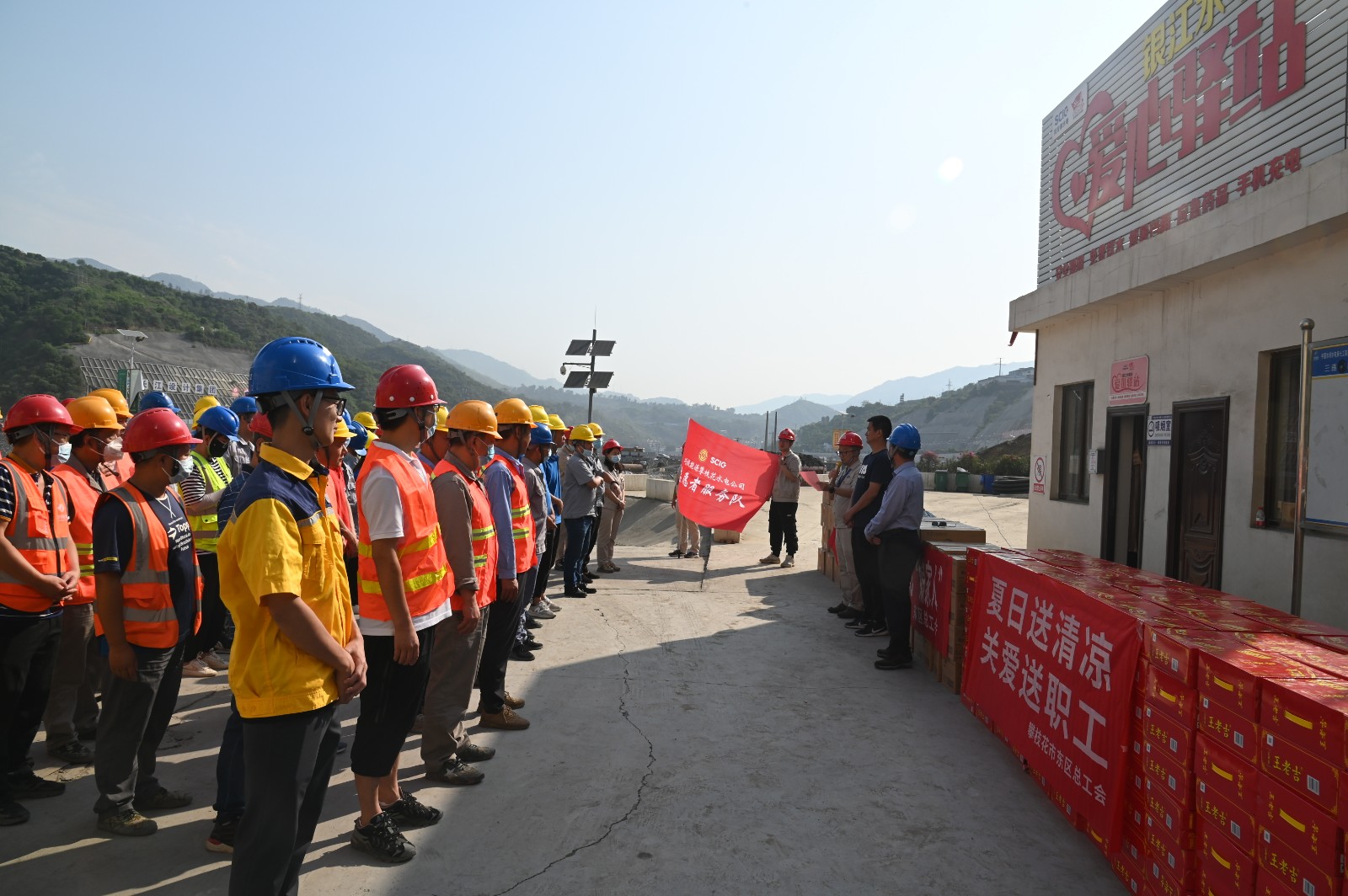 連日來(lái),攀枝花持續(xù)高溫,氣溫屢屢突破34℃高溫,7月8日上午,為切實(shí)維護(hù)銀江水電站一線工作者身體健康和合法利益,把關(guān)懷送到每一位工友身邊,攀枝花市東區(qū)總工會(huì)赴銀江水電站工地開(kāi)展送清涼慰問(wèn)活動(dòng),東區(qū)總工會(huì)維權(quán)工作部部長(zhǎng)劉欣,長(zhǎng)江設(shè)計(jì)集團(tuán)銀江項(xiàng)目常務(wù)副經(jīng)理、設(shè)總、設(shè)代處長(zhǎng)汪慶元,公司志愿者服務(wù)隊(duì)參加慰問(wèn),公司黨總支委員、董事會(huì)秘書(shū)、工會(huì)主席鄧勇主持活動(dòng)。