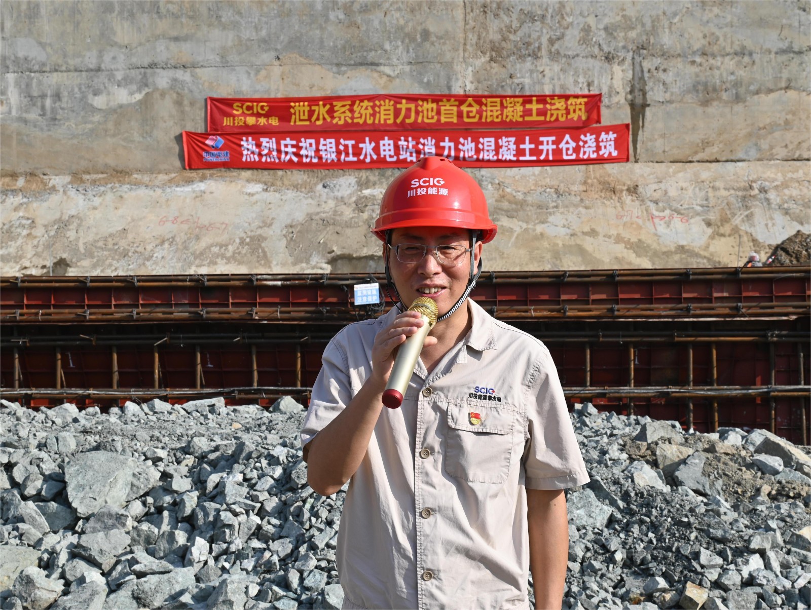 “現(xiàn)在我宣布泄水系統(tǒng)首倉(cāng)混凝土澆筑正式開始”,9月29日下午,在川投能源副總經(jīng)理、公司黨總支書記、董事長(zhǎng)徐孝剛的一聲指令下,銀江水電站泄水系統(tǒng)首倉(cāng)混凝土正式開始澆筑,標(biāo)志著主體工程施工由開挖逐步轉(zhuǎn)入混凝土澆筑階段。