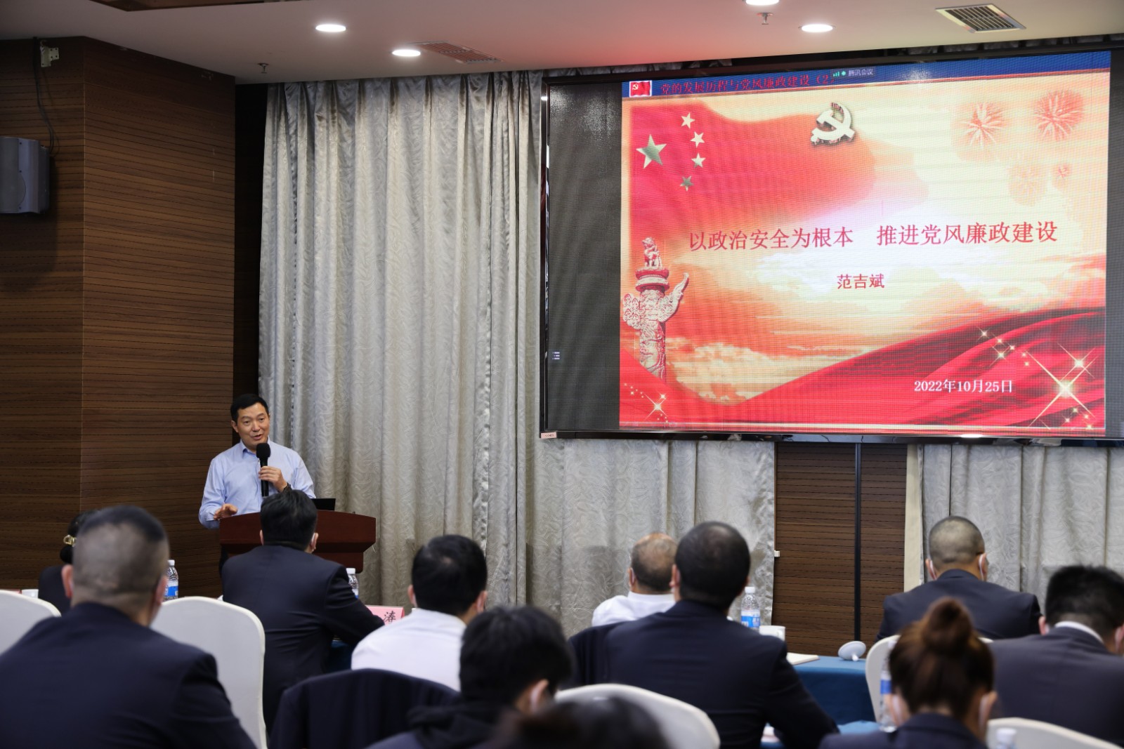 公司領(lǐng)導(dǎo)班子成員、全體黨員分別在主會(huì)場、分會(huì)場參會(huì),會(huì)議嚴(yán)格遵守疫情防控各項(xiàng)規(guī)定。