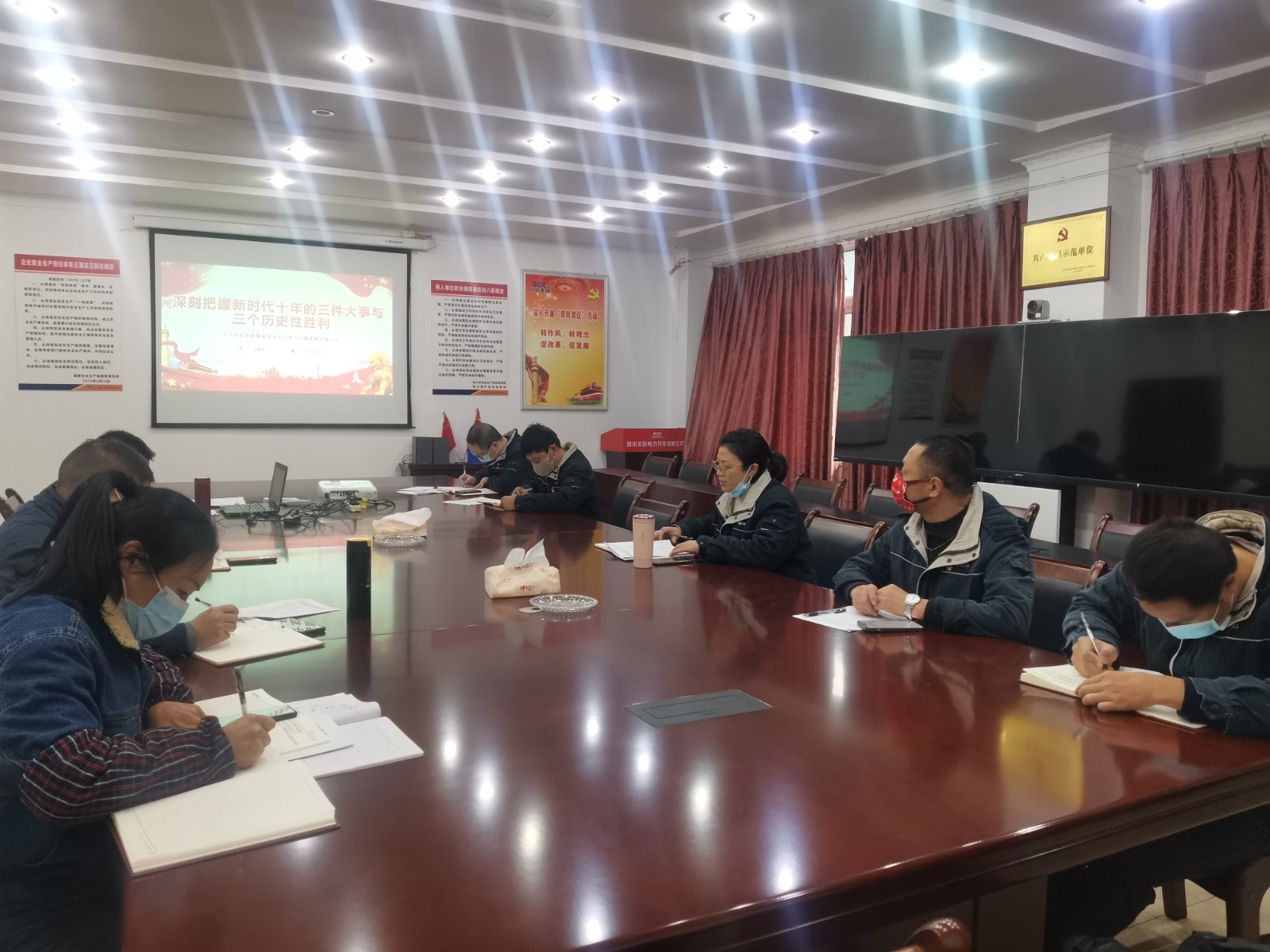 學(xué)習(xí)會(huì)上,公司黨總支委員、紀(jì)檢組長(zhǎng)、工會(huì)主席汪曉力對(duì)黨的二十大精神宣講從“深刻把握新時(shí)代十年的三件大事與三個(gè)歷史性勝利”角度切入,通過(guò)對(duì)新時(shí)代十年中具有深遠(yuǎn)歷史意義的三件大事“迎來(lái)中國(guó)共產(chǎn)黨成立一百周年”“中國(guó)特色社會(huì)主義進(jìn)入新時(shí)代”“完成脫貧攻堅(jiān)、全面建成小康社會(huì)的歷史任務(wù),實(shí)現(xiàn)第一個(gè)百年奮斗目標(biāo)”進(jìn)行闡釋解讀,指出“這是中國(guó)共產(chǎn)黨和中國(guó)人民團(tuán)結(jié)奮斗贏得的歷史性勝利,是彪炳中華民族發(fā)展史冊(cè)的歷史性勝利,也是對(duì)世界具有深遠(yuǎn)影響的歷史性勝利”,深刻把握新時(shí)代“三件大事”“三個(gè)歷史性勝利”對(duì)我們深化對(duì)新時(shí)代十年偉大變革的重要認(rèn)識(shí)、走好全面建設(shè)社會(huì)主義現(xiàn)代化國(guó)家新征程具有極為重大的意義。汪曉力要求,要進(jìn)一步弘揚(yáng)理論聯(lián)系實(shí)際的優(yōu)良學(xué)風(fēng),把黨的創(chuàng)新理論學(xué)習(xí)好、宣傳好、貫徹好,用黨的最新理論武裝頭腦、指導(dǎo)實(shí)踐、有力推動(dòng)公司高質(zhì)量發(fā)展。