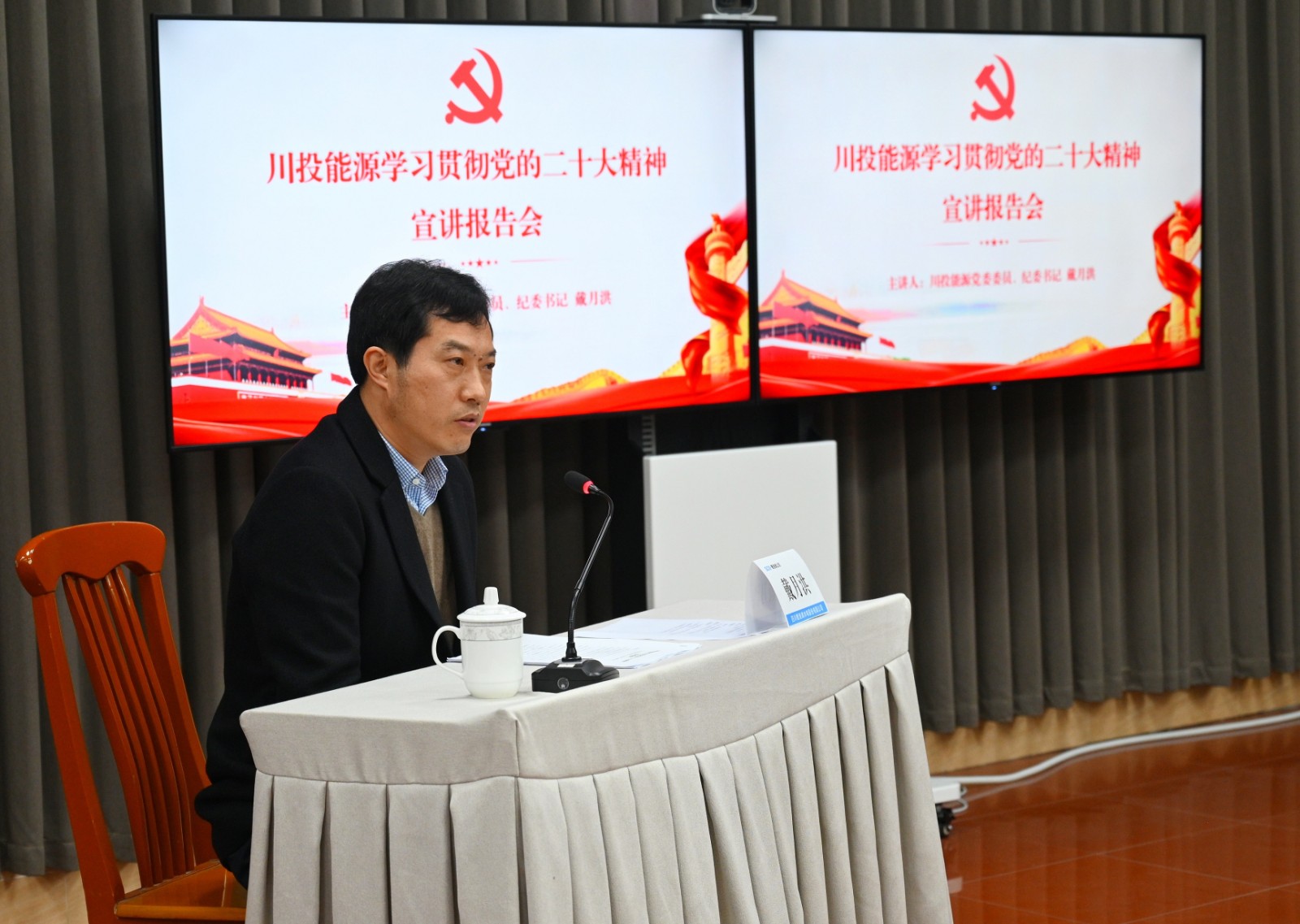 戴月洪指出,黨的二十大指明了以中國式現(xiàn)代化推進(jìn)中華民族偉大復(fù)興的前進(jìn)方向。公司黨員干部要按照黨的二十大報(bào)告對(duì)國資國企作出的重大部署,結(jié)合省委、省國資委黨委、集團(tuán)公司黨委和川投能源黨委的部署要求,堅(jiān)持政治第一標(biāo)準(zhǔn),扛起黨建第一責(zé)任,聚焦發(fā)展第一要?jiǎng)?wù),守牢安全第一底線。一是切實(shí)抓好學(xué)習(xí)培訓(xùn),廣泛生動(dòng)開展宣講,扎實(shí)做好宣傳報(bào)道,感悟汲取思想偉力,持續(xù)掀起學(xué)習(xí)黨的二十大精神熱潮。二是深刻把握實(shí)踐要求,筑牢政治忠誠,堅(jiān)決做到“兩個(gè)維護(hù)”,狠抓任務(wù)落實(shí),保持戰(zhàn)略定力,堅(jiān)持底線思維,著力防范化解風(fēng)險(xiǎn)挑戰(zhàn),更加精準(zhǔn)有效推動(dòng)企業(yè)高質(zhì)量發(fā)展。