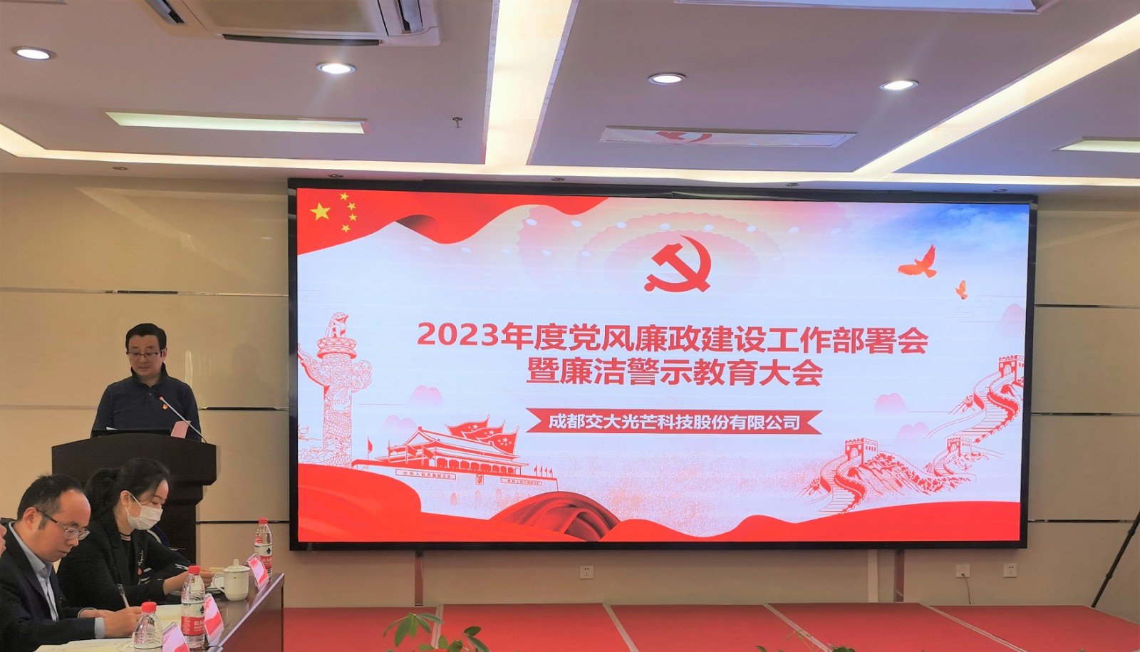 為進(jìn)一步貫徹落實(shí)黨的二十大關(guān)于全面從嚴(yán)治黨戰(zhàn)略部署,深入推進(jìn)公司黨風(fēng)廉政和反腐敗工作。2月3日,交大光芒召開2023年度黨風(fēng)廉政建設(shè)工作部署會(huì)暨廉潔警示教育大會(huì),公司領(lǐng)導(dǎo)班子成員、中層副職以上管理人員、黨員參加會(huì)議。公司黨總支書記、總經(jīng)理劉成輝主持會(huì)議并作廉潔警示談話。