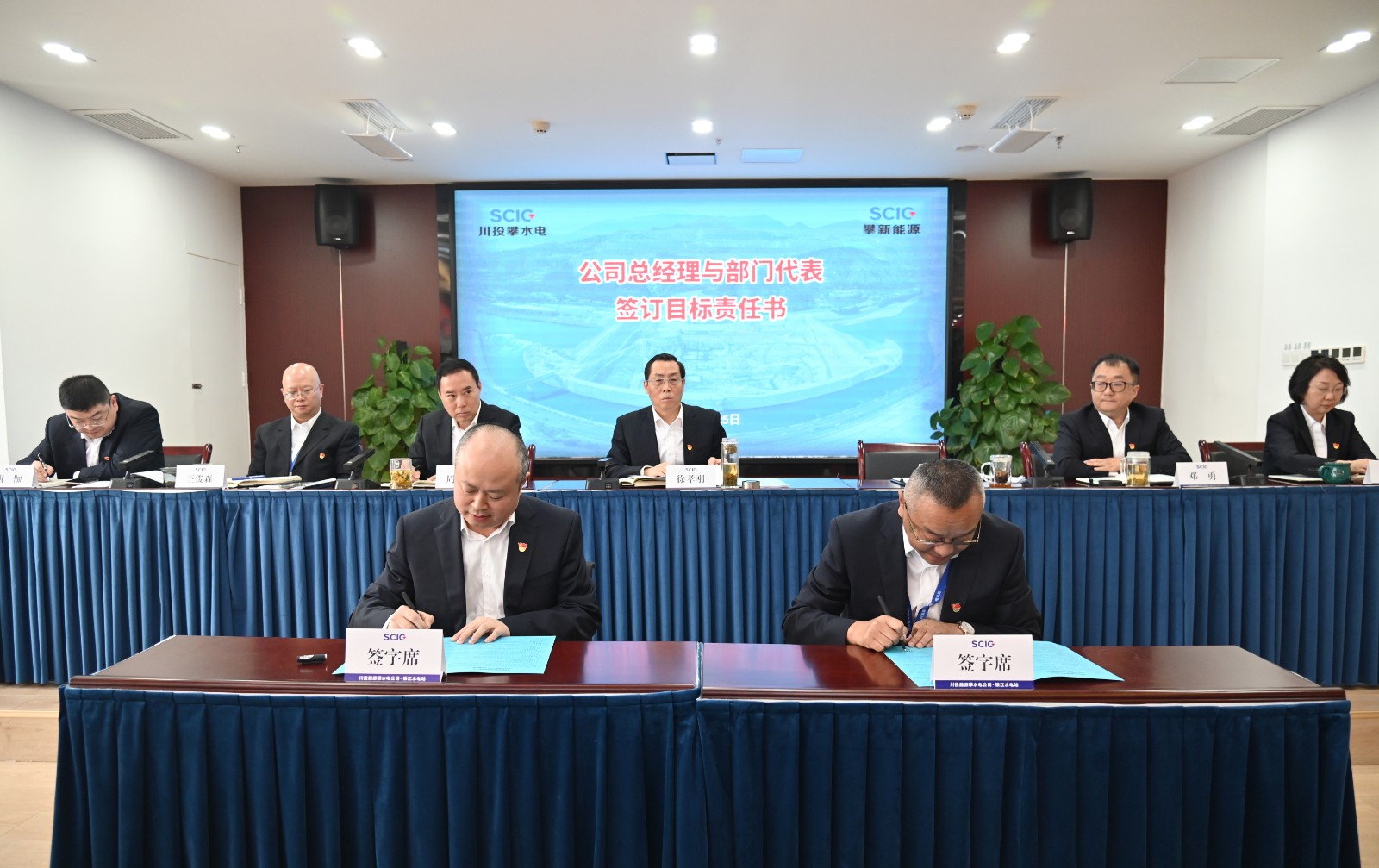 會議傳達學習了川投集團、川投能源2023年工作會精神;攀水電公司總經(jīng)理吳巍嶼和攀新能源公司總經(jīng)理周軍分別作了兩公司2022年工作總結(jié)及2023年工作計劃的報告,全面總結(jié)了2022年各項目標任務完成情況,分析了當前面臨的形勢和問題,分解下達了2023年主要目標任務,提出了主要工作舉措。按照董事會授權(quán),吳巍嶼總經(jīng)理與攀水電公司部門代表簽訂了《2023年度部門目標責任書》;部門及參建單位代表分別作了表態(tài)發(fā)言。