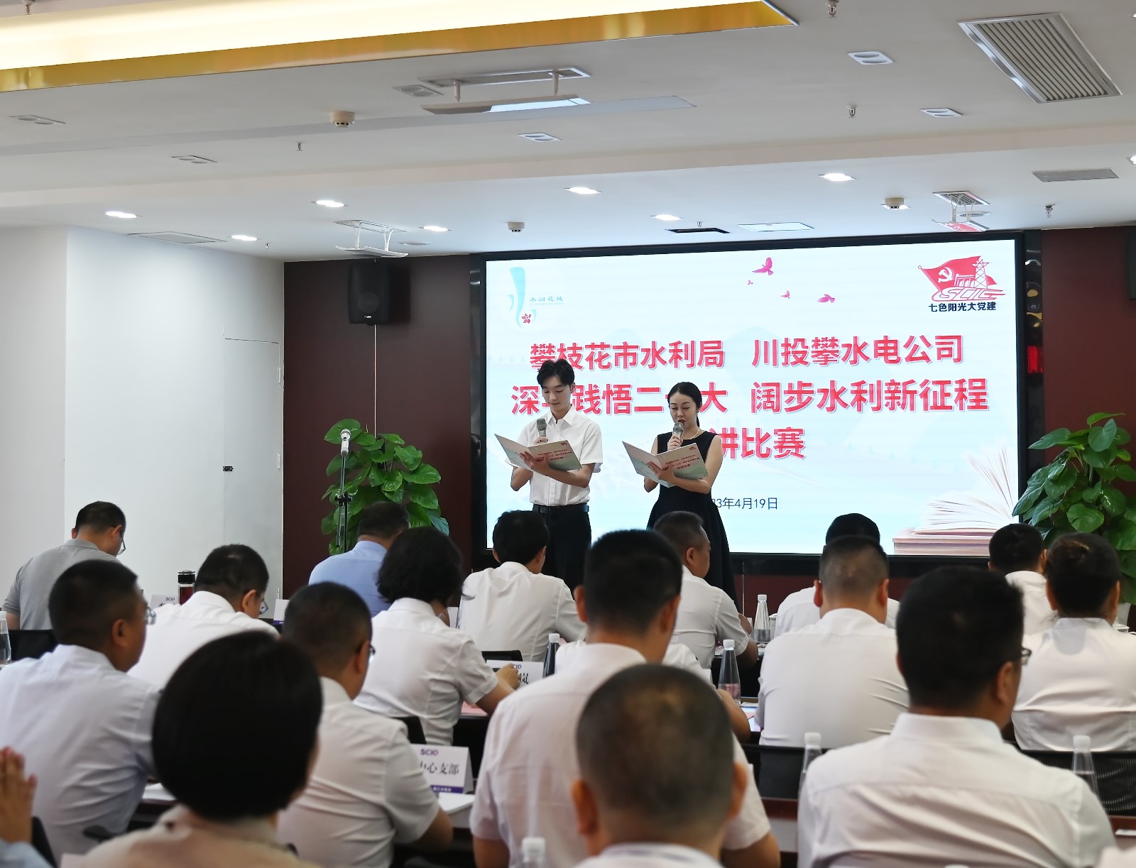 為全面貫徹黨的二十大精神,扎實開展學(xué)習(xí)貫徹習(xí)近平新時代中國特色社會主義思想主題教育,在攀水電黨總支開展主題教育領(lǐng)導(dǎo)干部讀書班期間,為豐富學(xué)習(xí)形式,營造濃厚學(xué)習(xí)氛圍,近日,攀水電公司與攀枝花市水利局共同舉辦了“深學(xué)踐悟二十大、闊步水利新征程”深化“水潤花城”黨建品牌建設(shè)暨政企黨組織共建活動,開展征文和演講比賽。攀枝花市直機關(guān)工委常務(wù)副書記鮮明,攀枝花市水利局黨組成員、副局長林兆東,黨組成員、機關(guān)黨委書記胡嘉,川投能源副總經(jīng)理、攀水電公司黨總支書記、董事長、攀新能源董事長徐孝剛及讀書班成員參加此次活動并擔(dān)任評委。