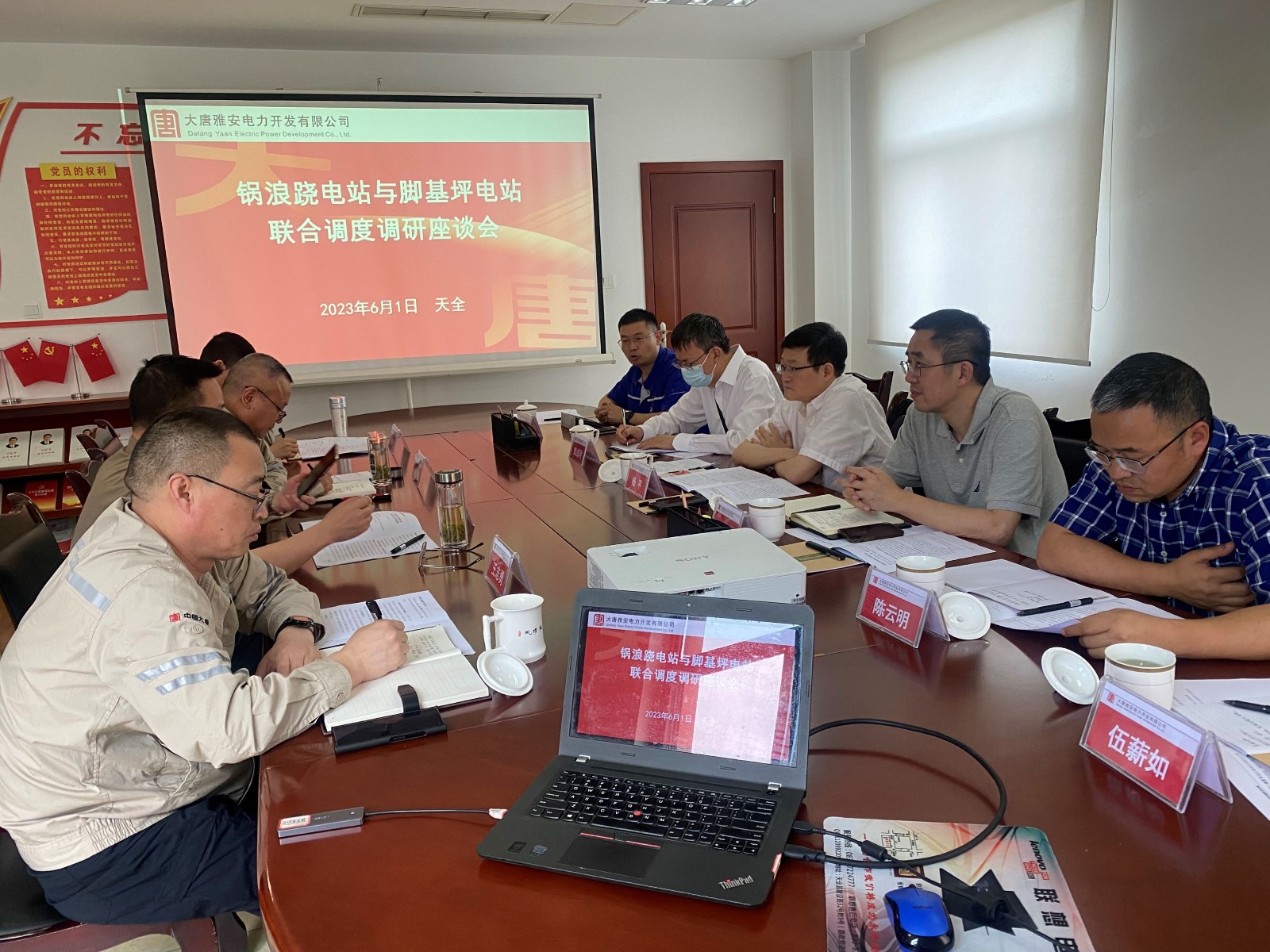 為貫徹落實黨中央《關于在全黨大興調(diào)查研究的工作方案》和省委關于大興調(diào)查研究的實施方案精神,按照集團公司黨委和川投能源黨委對主題教育活動開展基層調(diào)研、解決實際問題的安排部署,6月1日,川投能源黨委委員、副總經(jīng)理、總法律顧問楊平帶隊,以《鍋浪蹺電站與腳基坪電站聯(lián)合調(diào)度》課題深入天全河流域大唐鍋浪蹺電站和川投電力腳基坪電站調(diào)研,與大唐雅安公司、大唐鍋浪蹺電廠、腳基坪電廠等就生產(chǎn)經(jīng)營、防汛聯(lián)合調(diào)度、電力市場交易同步、日常調(diào)度同步等問題溝通交流。