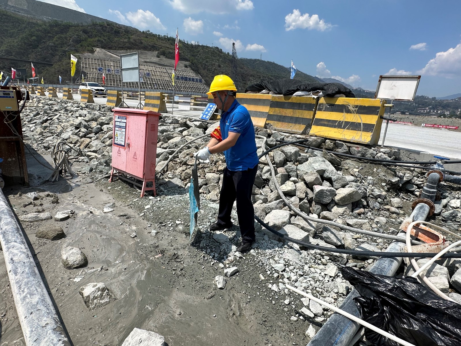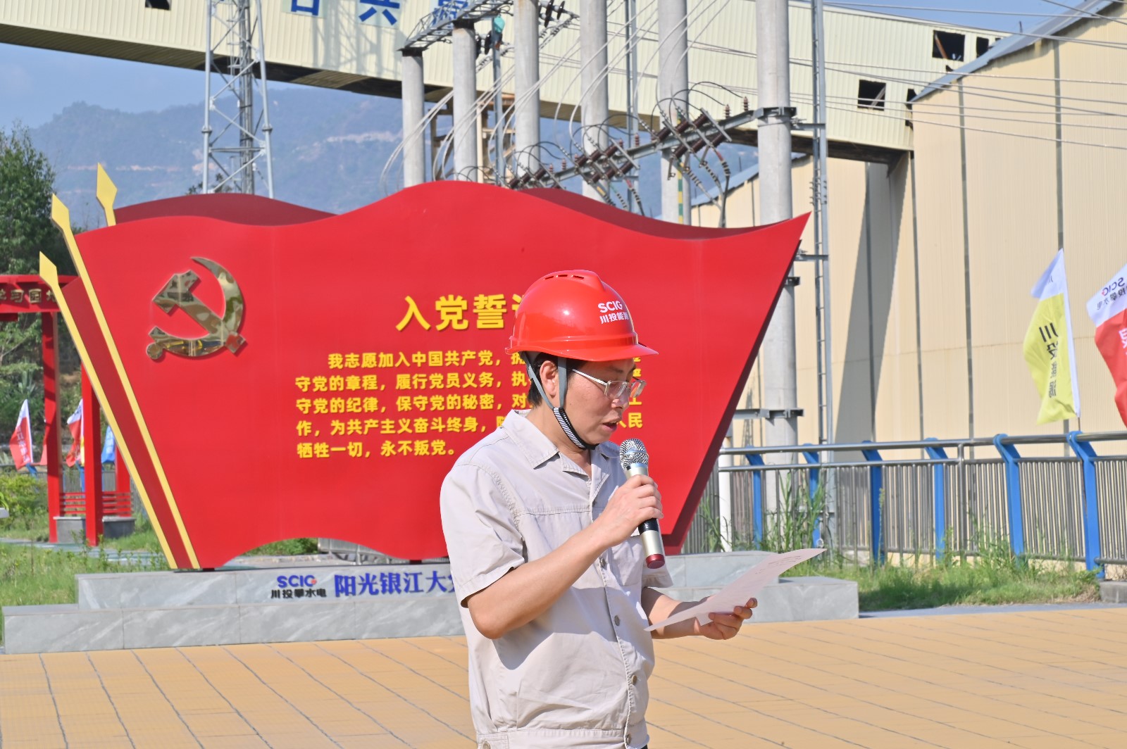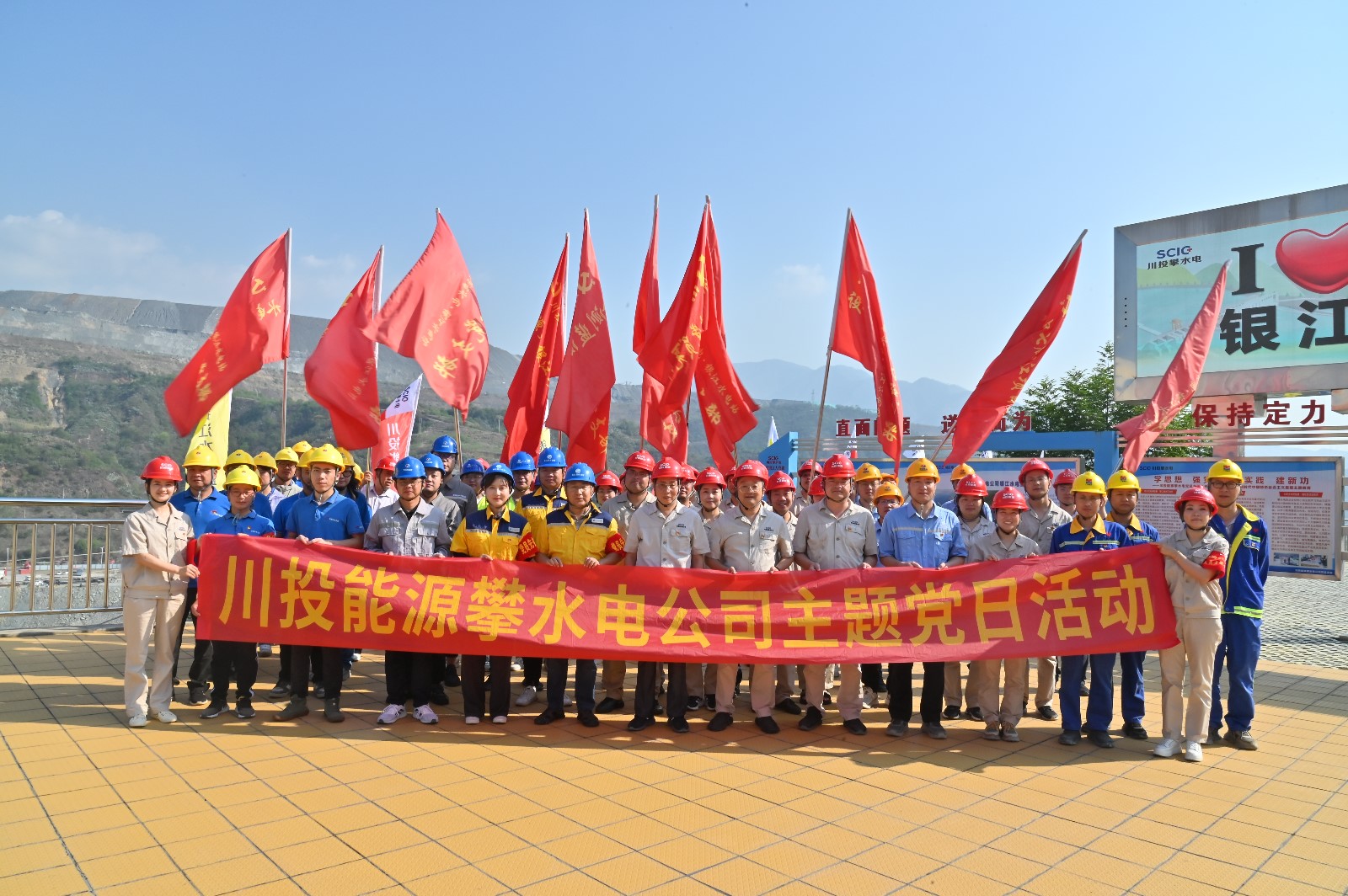 工地現(xiàn)場,在烈日的“考驗”下,川投能源副總經(jīng)理,攀水電公司黨總支書記、董事長徐孝剛作動員講話。他講到,黨的二十大明確提出:要在全社會弘揚勞動精神、奮斗精神、奉獻精神,培育時代新風新貌。在黨102歲生日之際,今天我們團結在一起,開展主題黨日活動,傳承黨自力更生、艱苦創(chuàng)業(yè)的紅色基因,弘揚團結協(xié)作、無私奉獻的政治品格,建設綠色環(huán)保銀江,共建和諧文明工地;希望大家發(fā)揚不怕累、不怕臟、不怕苦的勞動精神,用勤勞的雙手,打造美麗銀江,展現(xiàn)“顏值擔當”。