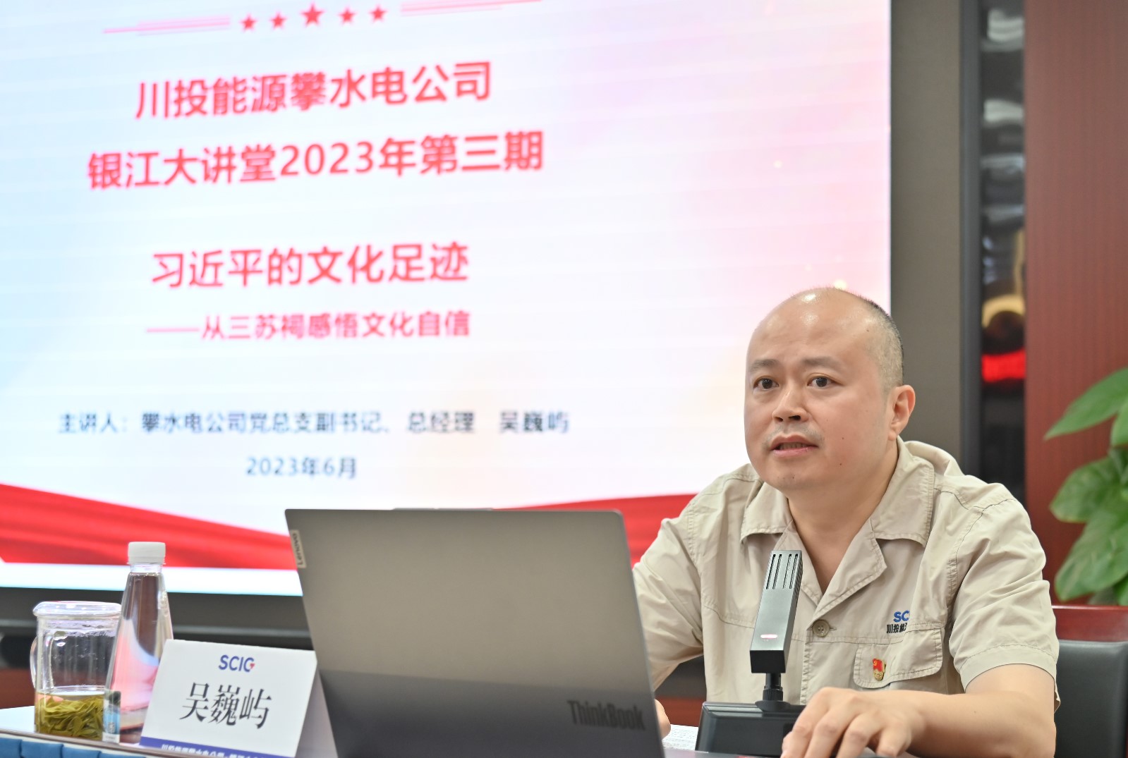 為扎實(shí)開展學(xué)習(xí)貫徹習(xí)近平新時代中國特色社會主義思想主題教育,深入學(xué)習(xí)貫徹黨的二十大精神,進(jìn)一步加強(qiáng)員工家風(fēng)教育和廉潔教育,推動主題教育走深走實(shí),6月29日,攀水電公司黨總支副書記、總經(jīng)理吳巍嶼以《習(xí)近平的文化足跡——從三蘇祠感悟文化自信》為題,講授中華優(yōu)秀傳統(tǒng)文化教育黨課,公司在攀領(lǐng)導(dǎo)、各參建單位主要負(fù)責(zé)人、公司全體員工及各參建單位黨員代表共50余人參加。