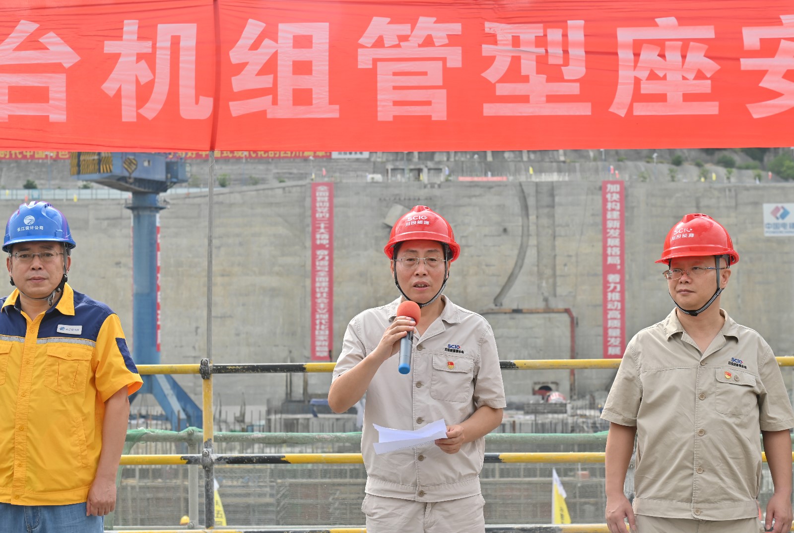 儀式上,徐孝剛對本次儀式作總結講話,他指出銀江水電站自2019年7月22日開工以來,一個個重要目標節(jié)點的順利實現(xiàn),離不開各參建單位緊密配合和辛苦付出,對各參建單位的工作給予高度認可和充分肯定,并對后續(xù)工程建設提出了具體要求。他強調,一是要深入學習領會習近平總書記來川視察重要指示精神和省委第十二屆三次全會精神,全力推動在攀水電公司及銀江水電站落地落實、見行見效。二是要著力打造銀江精神,樹立標桿,做出成績,持續(xù)發(fā)揚工程人戰(zhàn)天斗地的精神。三是要堅決貫徹一切為現(xiàn)場服務的理念,各參建單位要緊密配合,不遺余力做實做細現(xiàn)場各項工作,切實保障各節(jié)點目標如期實現(xiàn),力爭實現(xiàn)2024年底首臺機組具備投產發(fā)電條件目標,為2025年底全部機組投產發(fā)電夯實基礎。