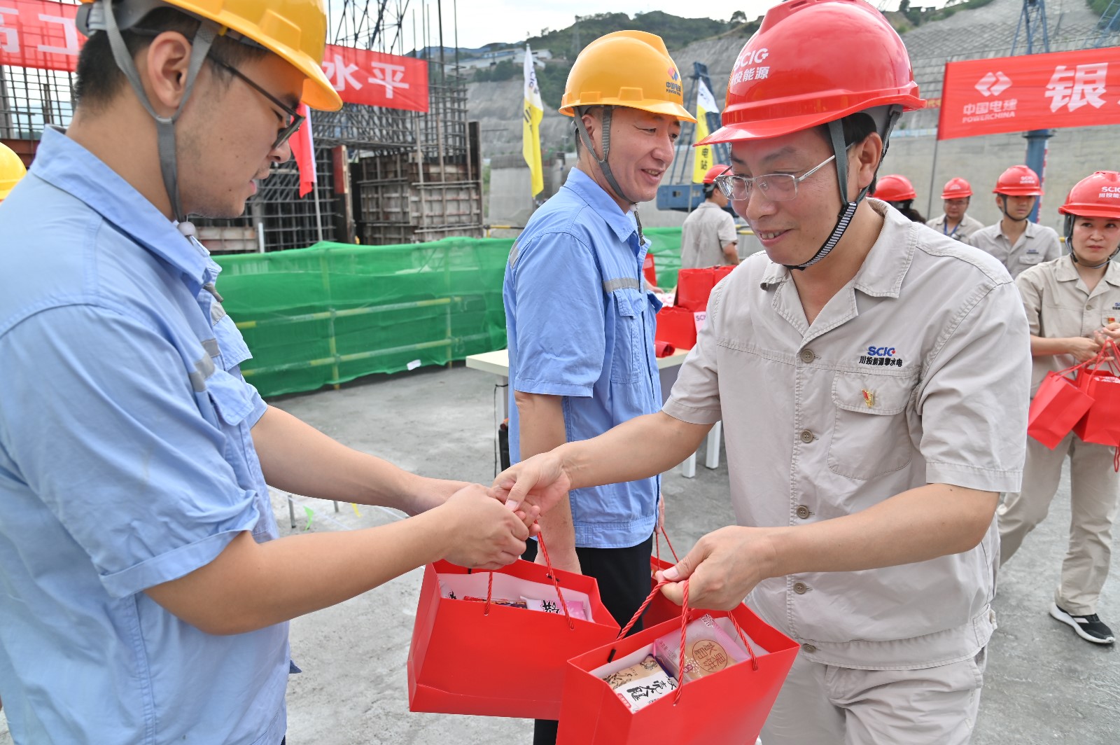 儀式最后,徐孝剛一行代表攀水電公司向中秋佳節(jié)仍堅守在施工一線的全體人員送上了中秋、國慶節(jié)日慰問。