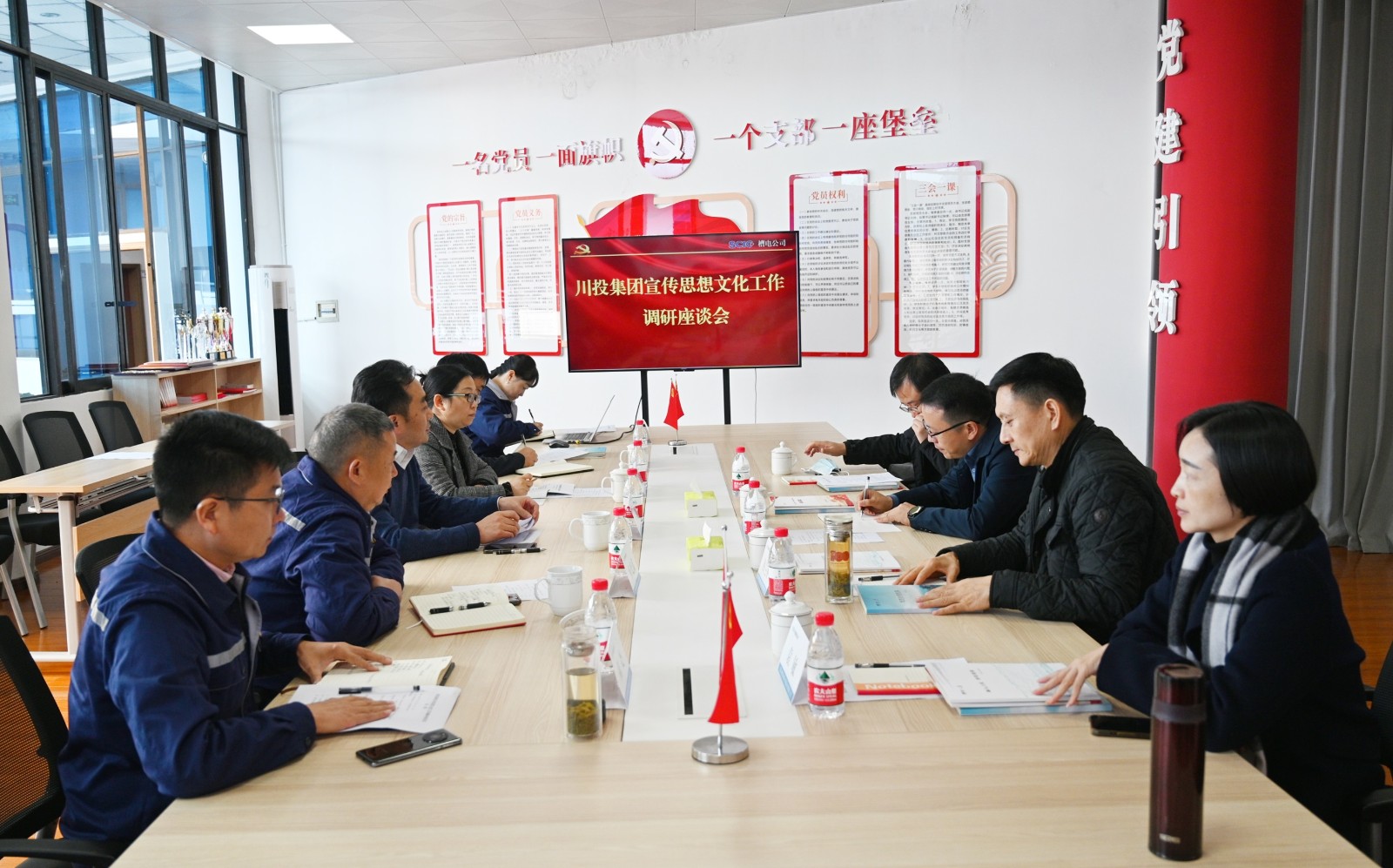為深入學習貫徹習近平總書記對宣傳思想文化工作作出的重要指示精神,全面加強國有企業(yè)宣傳思想文化建設,確保黨的二十大精神和省委、省政府各項決策部署在企業(yè)中貫徹落實,11月16日,川投集團黨委宣傳部(群團工作部)部長何金輝一行赴川投電力所屬槽漁灘公司調研宣傳思想文化工作,川投能源黨委副書記、工會主席冉蘭平,川投電力黨委書記、董事長楊濤等陪同調研。
