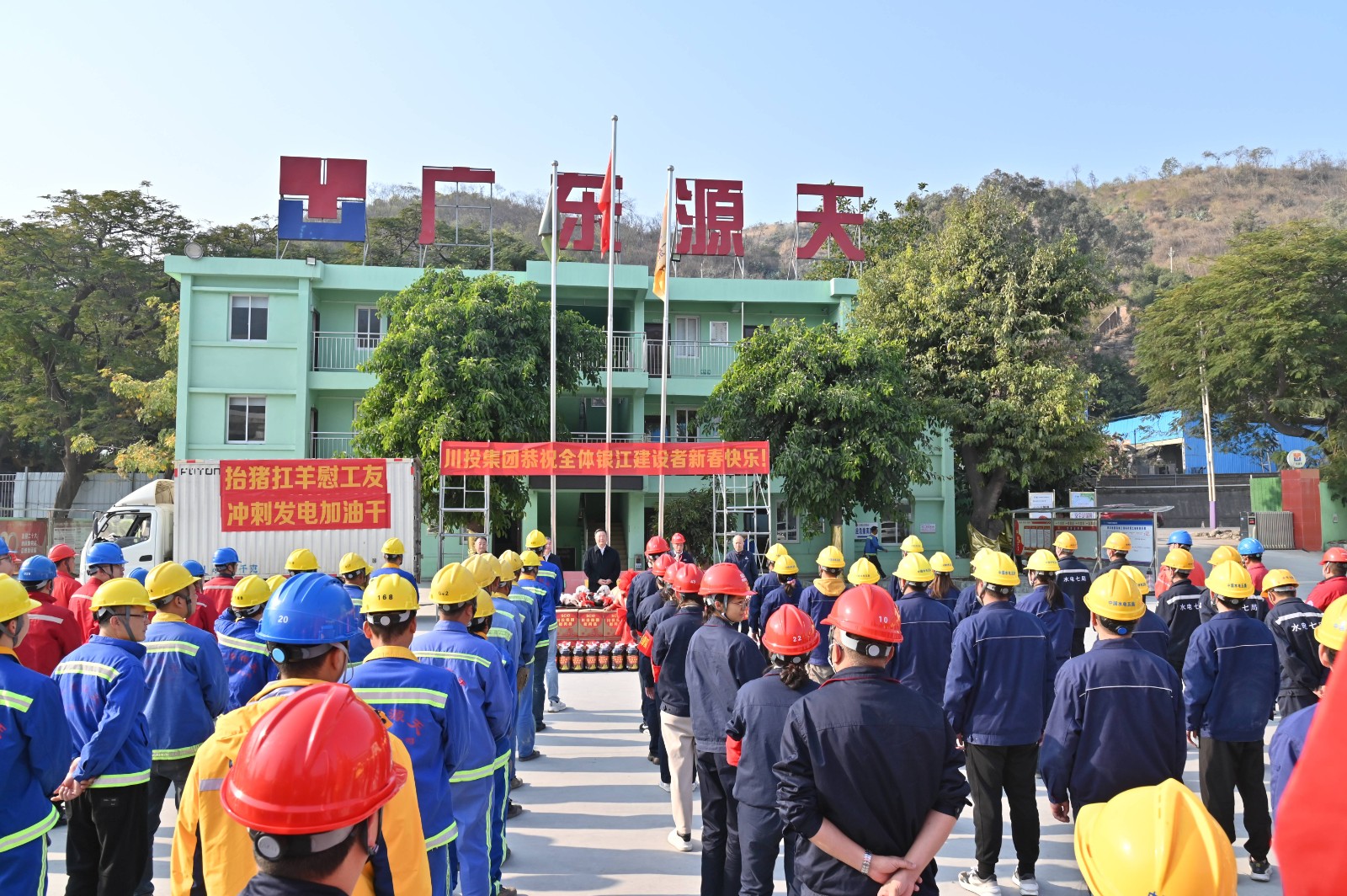 隨后,按照川投集團(tuán)黨委統(tǒng)一部署,對攀水電公司及銀江水電站參建單位一線員工800余人致以新春祝福,并為大家送上整豬整羊、食用油等慰問物資,鼓勵大家為沖刺蓄水發(fā)電目標(biāo)加油干。