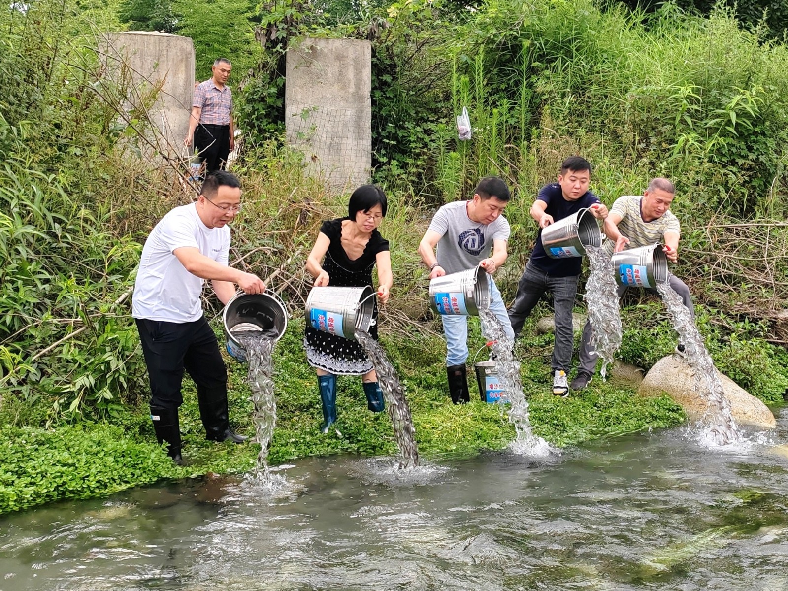 上午10時,位于通濟(jì)驛站附近的湔江河段魚類增殖放流投放點(diǎn)橫幅飄揚(yáng)、人潮涌動,在彭州市農(nóng)業(yè)農(nóng)村局、通濟(jì)鎮(zhèn)政府等主管部門人員的現(xiàn)場指導(dǎo)和周邊村鎮(zhèn)群眾代表的共同見證下,公司人員現(xiàn)場放流了珍貴的齊口裂腹魚苗共計20000尾,將新的生機(jī)和活力注入碧波蕩漾的河流。