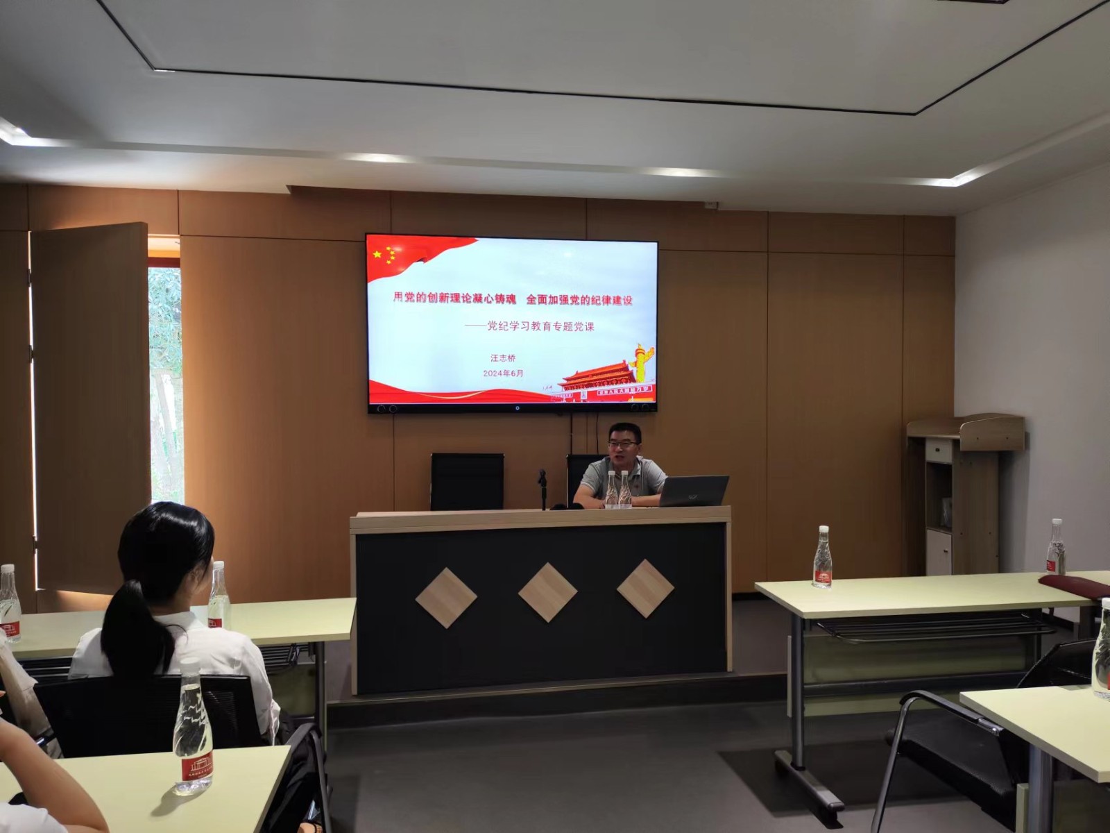 活動首先進(jìn)行了“第一議題”學(xué)習(xí),學(xué)習(xí)習(xí)近平總書記在山東考察時(shí)關(guān)于黨紀(jì)學(xué)習(xí)教育的重要講話精神。集體學(xué)習(xí)結(jié)束后,黨總支副書記、總經(jīng)理助理汪志橋以《用黨的創(chuàng)新理論凝心鑄魂 全面加強(qiáng)黨的紀(jì)律建設(shè)》為題講授黨紀(jì)學(xué)習(xí)教育專題黨課。他指出,這次黨紀(jì)學(xué)習(xí)教育是黨中央作出的重大部署,是加強(qiáng)黨的紀(jì)律建設(shè)、推動全面從嚴(yán)治黨向縱深發(fā)展的重要舉措。大家務(wù)必高度重視,以高度的思想自覺、政治自覺、行動自覺,知行知止、令行禁止,以黨紀(jì)學(xué)習(xí)教育賦能公司生產(chǎn)經(jīng)營中心工作,把黨紀(jì)學(xué)習(xí)教育激發(fā)出的熱情干勁迅速轉(zhuǎn)化為凝心聚力、擔(dān)當(dāng)作為、干事創(chuàng)業(yè)上。