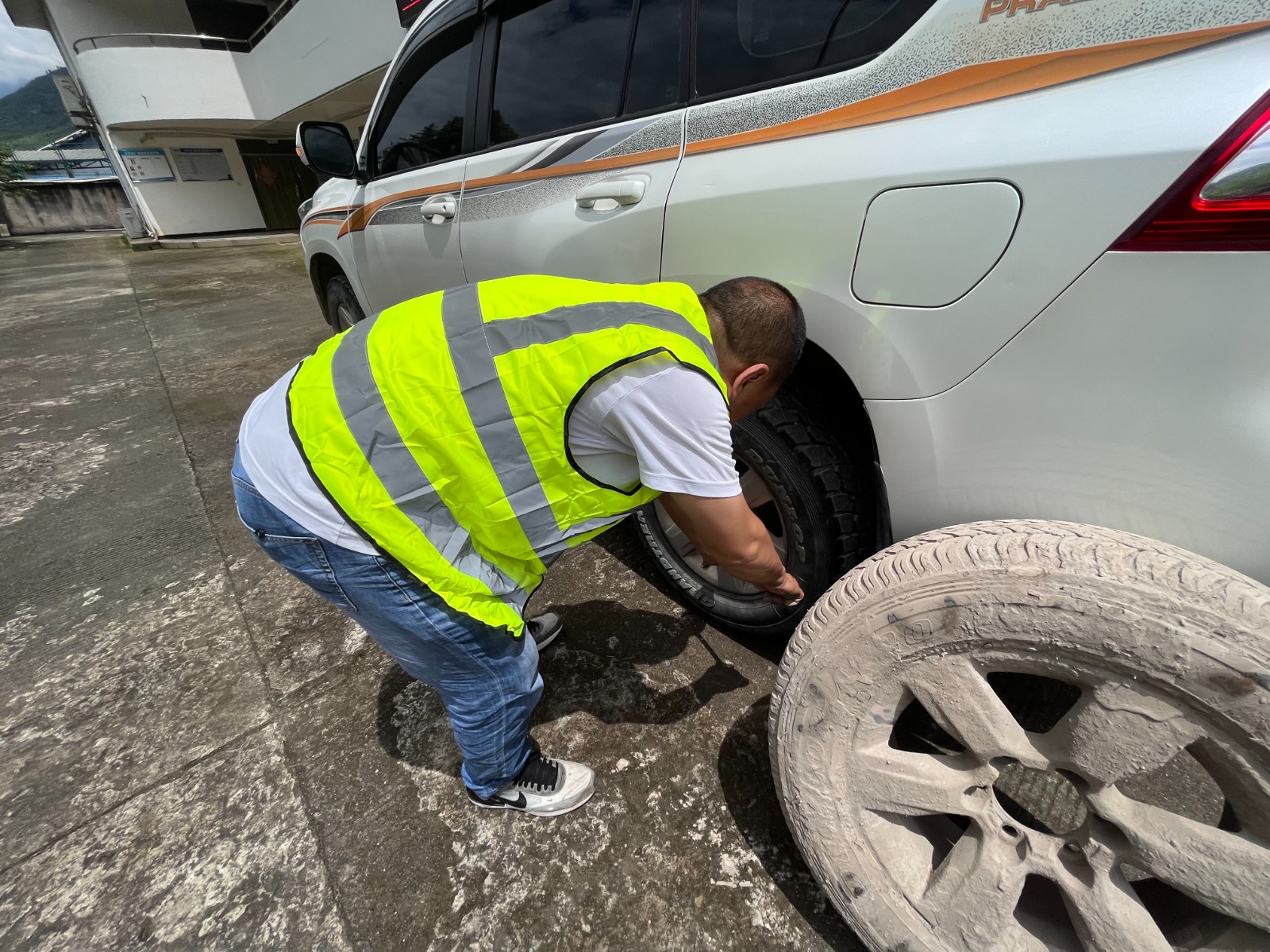 玉田電廠進(jìn)廠公路為鄉(xiāng)村水泥道和原始基坑路,路面窄、彎道多且存在駕駛視野盲區(qū),汛期雨后道路積水多、山上滾石現(xiàn)象時(shí)有發(fā)生,道路交通存在安全風(fēng)險(xiǎn)隱患。為提高電廠駕駛員的應(yīng)急響應(yīng)能力,確保發(fā)生車輛爆胎等突發(fā)意外時(shí)能迅速有效處置,提高自救能力,近日,玉田電廠開展車輛爆胎應(yīng)急演練。