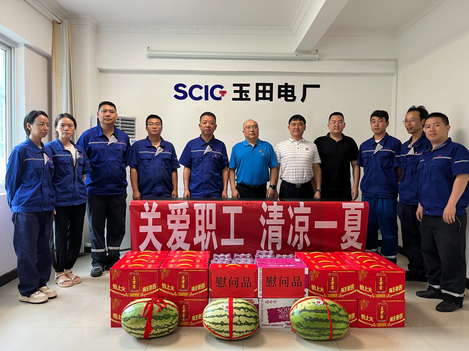 為了關愛基層員工身心健康,蔡承德還結(jié)合“四季暖陽”員工關愛行動開展,為電廠一線員工送上清涼飲品和深切慰問。