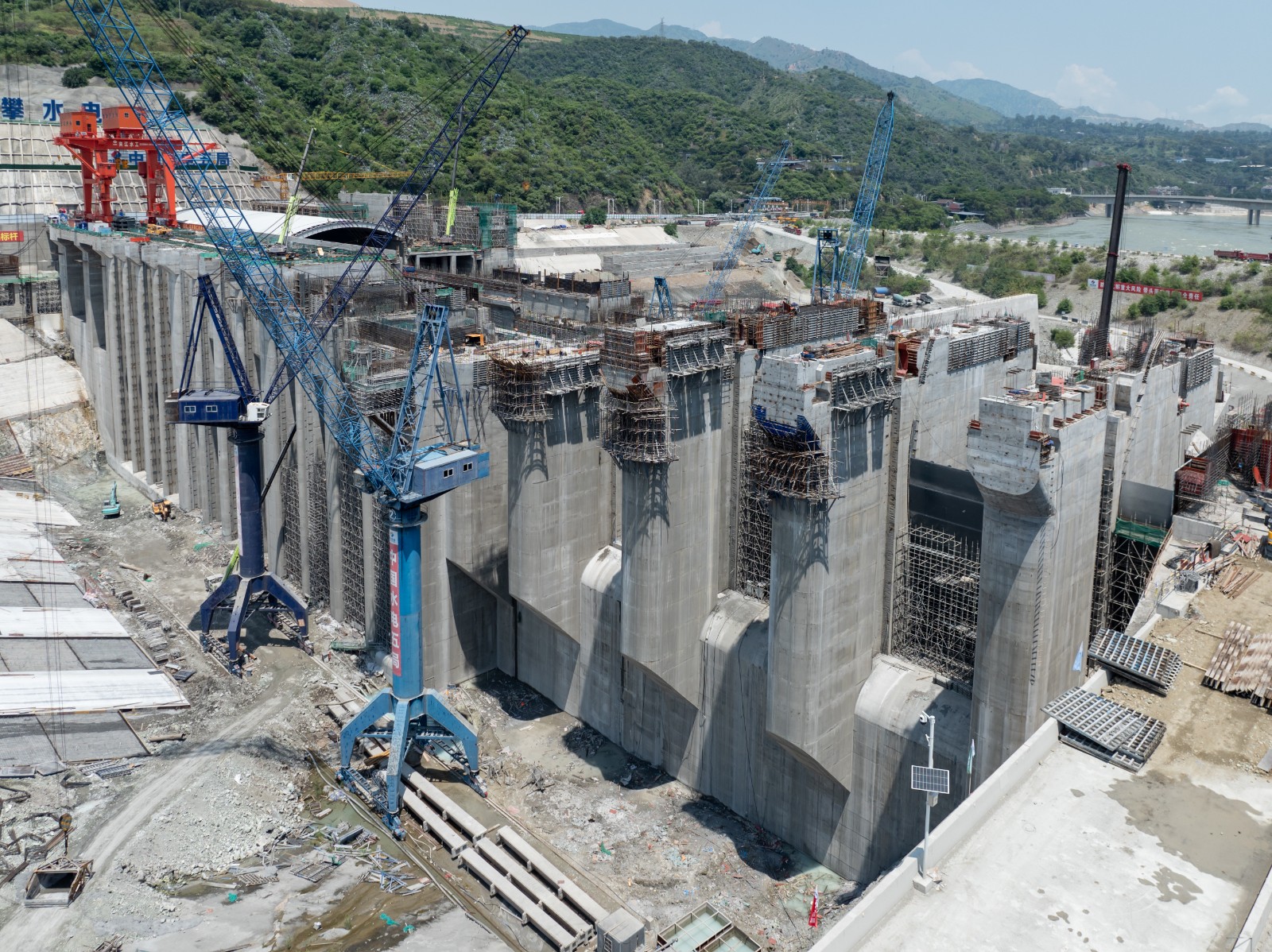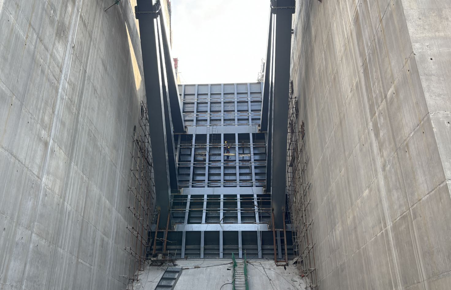 徐孝剛表示,金屬結(jié)構(gòu)安裝是實(shí)現(xiàn)工程下閘蓄水目標(biāo)的核心任務(wù),自7月下旬首節(jié)弧形工作門吊裝以來(lái),在不到3個(gè)月的時(shí)間內(nèi),將要完成近萬(wàn)噸的安裝工程量,工期緊、任務(wù)重、難度大,參建各方超前謀劃、提前部署,深入開(kāi)展設(shè)計(jì)及施工優(yōu)化,多次專題研討安裝方案并組織專家論證,突破多項(xiàng)常規(guī)方法,采取鋼絞線提升裝置安裝尾水事故檢修門、臨時(shí)平臺(tái)配合汽車吊站位安裝弧形工作門、門槽安裝及其二期混凝土澆筑工序循環(huán)優(yōu)化等一系列超常規(guī)措施,大幅縮短了安裝工期,取得了階段性成果,希望各參建單位持續(xù)保持昂揚(yáng)斗志、乘勢(shì)而上,協(xié)同并進(jìn)、合力攻堅(jiān),為全面實(shí)現(xiàn)工程建設(shè)目標(biāo)不懈奮斗。