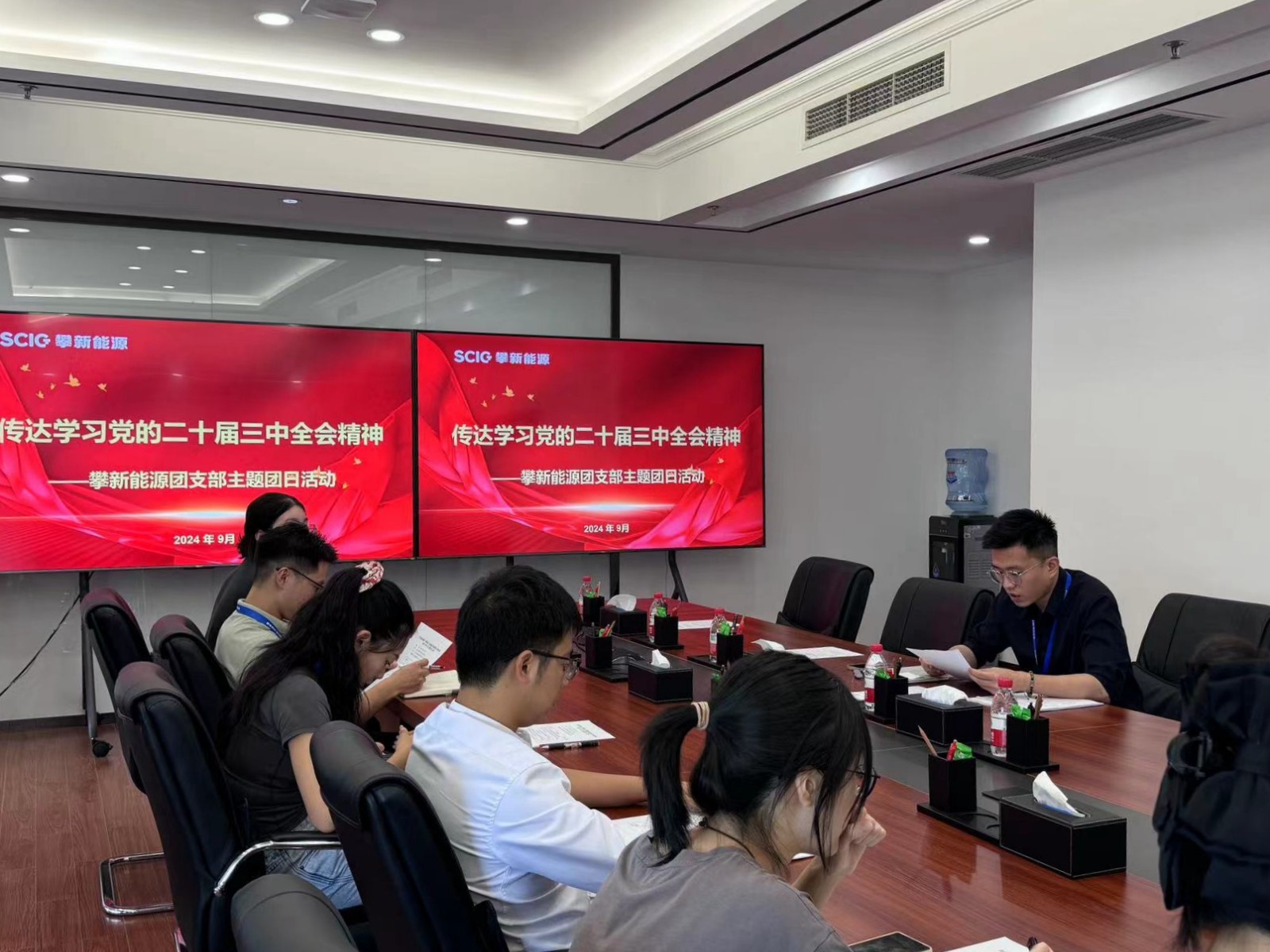 近日,攀新能源公司團(tuán)支部在川投大廈707會(huì)議室舉行2024年9月主題團(tuán)日活動(dòng),專題傳達(dá)學(xué)習(xí)《中國(guó)共產(chǎn)黨第二十屆中央委員會(huì)第三次全體會(huì)議公報(bào)》,學(xué)習(xí)貫徹黨的二十屆三中全會(huì)精神。攀新能源團(tuán)支部書記、經(jīng)營(yíng)管理部經(jīng)理潘鑫主持并領(lǐng)學(xué),公司全體團(tuán)員及屏山抽蓄公司全體團(tuán)員參會(huì)。