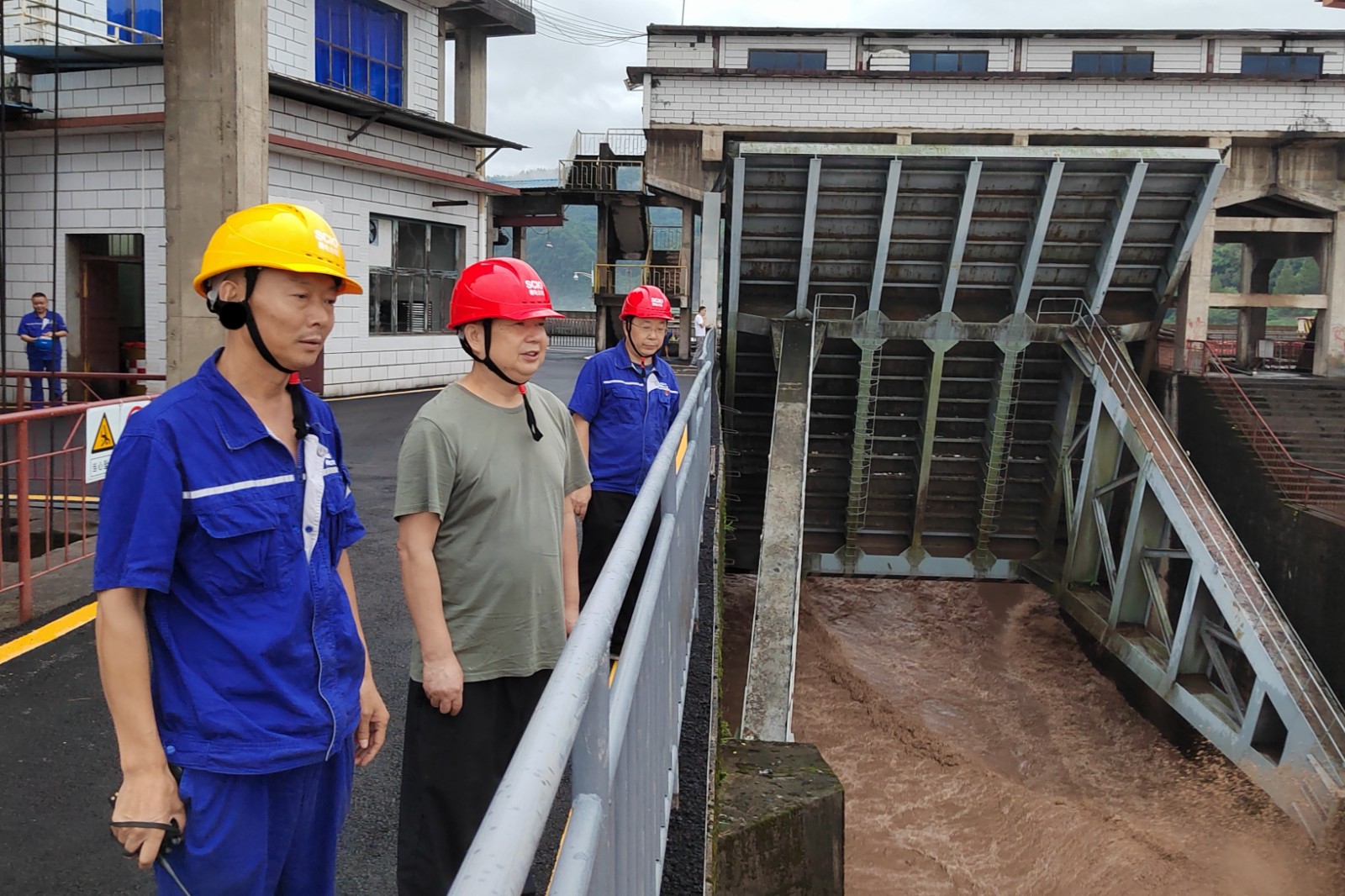 槽漁灘公司黨委書記、董事長何光富,副總經(jīng)理蔣玉兵帶領(lǐng)相關(guān)部門負責人趕赴電廠,對電廠的設備設施和防洪工作進行檢查,現(xiàn)場聽取電廠負責人關(guān)于防汛工作的安排、部署及落實情況匯報。到庫區(qū)對竹菁壩、董河河堤進行認真檢查,詳細了解水庫區(qū)域?qū)嵡椤?