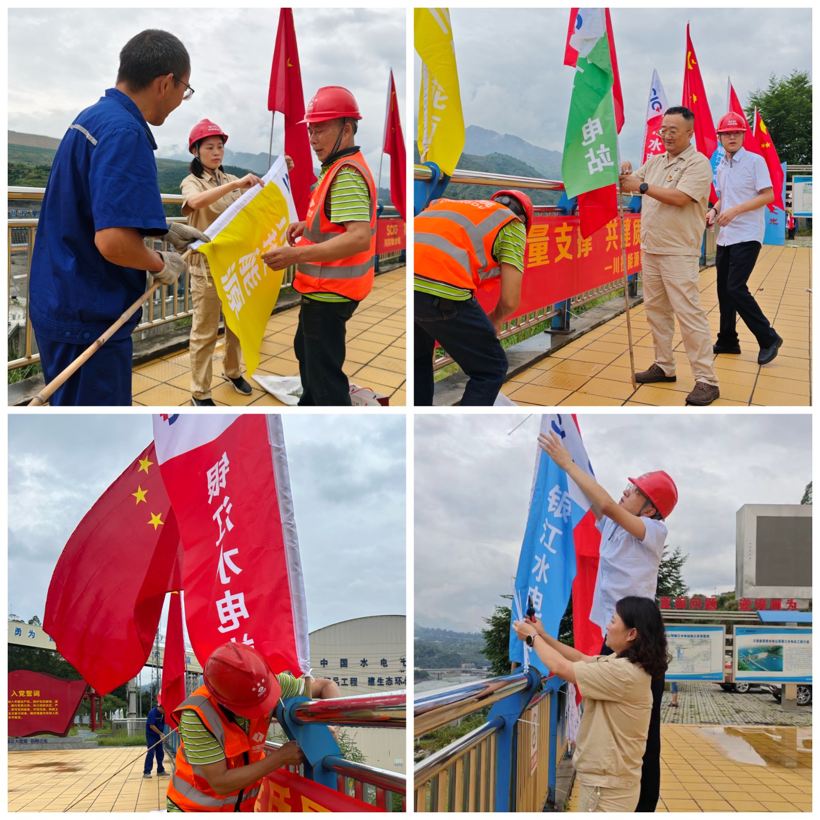 在大家的共同努力下,一面面嶄新鮮艷的五星紅旗,一幅幅絢麗的彩旗掛在黨建宣傳陣地和施工區(qū)域,紅旗彩旗與綠水青山交相輝映,隨著江風(fēng)襲來迎風(fēng)招展,構(gòu)成了金沙江畔的美麗畫卷。每名黨員都用勞動之美迎接國慶節(jié)的到來,用務(wù)實的工作作風(fēng)確保實現(xiàn)銀江水電站年底發(fā)電目標(biāo),用實際行動向祖國母親75歲華誕獻(xiàn)禮。