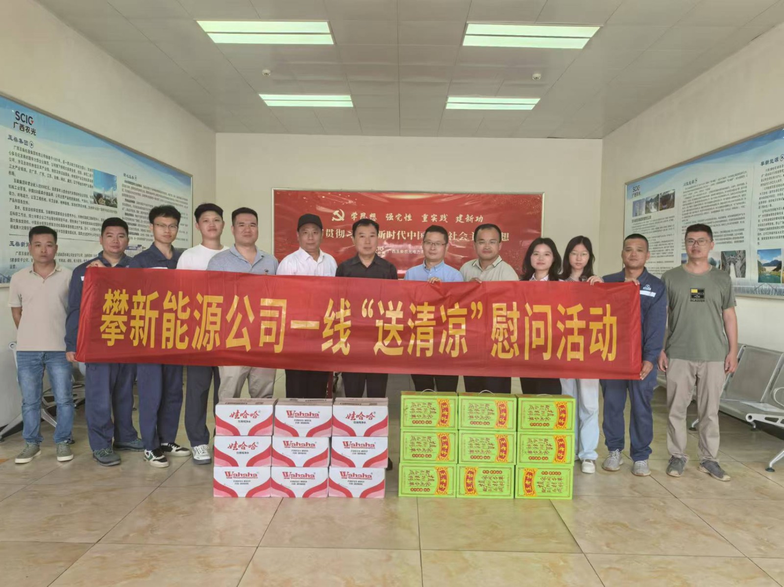 炎夏送清涼,溫情暖人心。攀新能源公司為進(jìn)一步做好防暑降溫工作,深切關(guān)懷在項(xiàng)目現(xiàn)場(chǎng)作業(yè)的一線職工職業(yè)健康,確?,F(xiàn)場(chǎng)安全生產(chǎn),組織開展了“送清涼”一線慰問(wèn)活動(dòng)。攀新能源公司黨支部委員、總經(jīng)理周軍帶隊(duì)“送清涼”慰問(wèn)小組,依次前往廣西農(nóng)光公司、桂平光伏電站、廣西融安公司光伏發(fā)電站項(xiàng)目現(xiàn)場(chǎng),為辛勤工作的勞動(dòng)者們送去清涼與關(guān)懷。