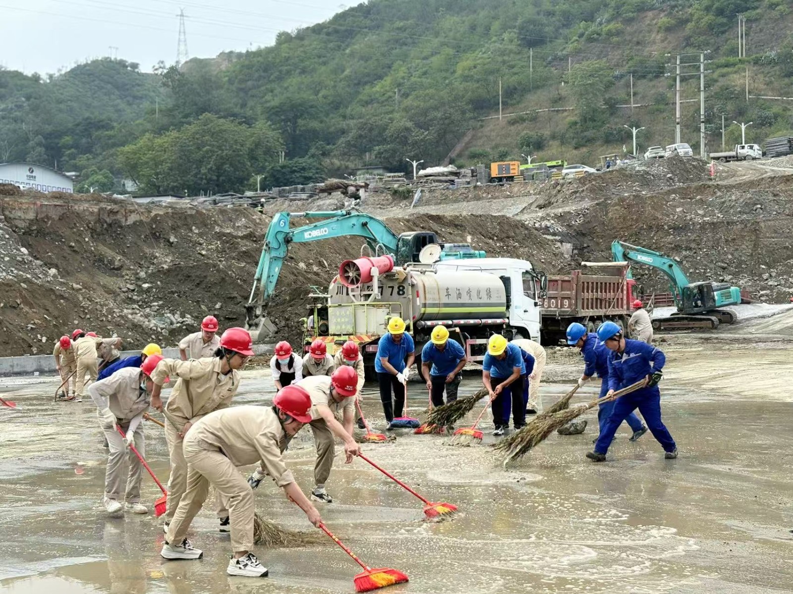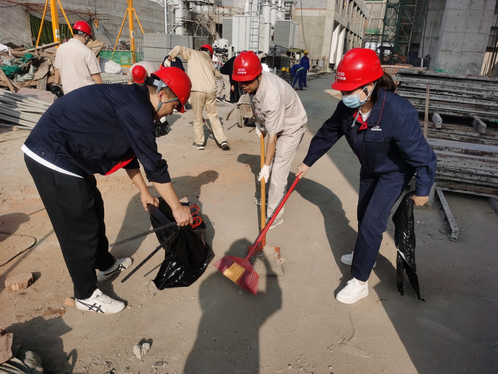 活動開始前,安全環(huán)保部經(jīng)理唐云宏從安全生產(chǎn)應(yīng)急知識、工地安全防護和注意事項方面進行了簡要培訓,提醒、督促大家在施工現(xiàn)場一定要做到“抬頭看天,低頭看路”,認真做好安全防護,隨時保持安全警惕性。隨后,各支部黨員同志、志愿者們斗志昂揚、團結(jié)協(xié)作,分為三個小組開展工地清掃、整治衛(wèi)生死角活動,大家手持垃圾袋、掃帚、火鉗等工具,對壩頂、GIS樓、上游導流明渠、鋼筋場等區(qū)域進行了集中清理整治,共同營造了干凈整潔的施工環(huán)境。