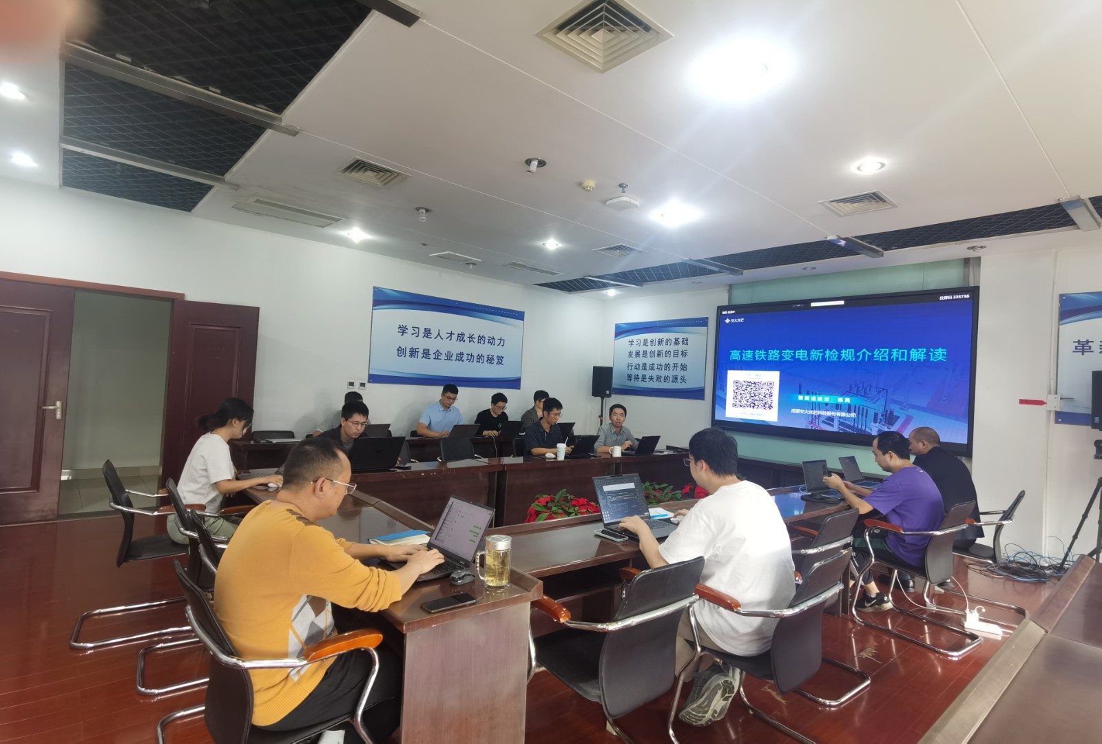 楊昊詳細(xì)解讀了新檢規(guī)的出臺(tái)背景、具體內(nèi)容和重大意義。他指出,新檢規(guī)落實(shí)國(guó)鐵集團(tuán)黨組關(guān)于牽引變電所無(wú)人化的工作部署,適應(yīng)信息化、智能化發(fā)展進(jìn)程,將牽引變電所運(yùn)行管理、運(yùn)維修試、應(yīng)急保障等規(guī)則予以完善,是交大光芒高鐵供電智能運(yùn)維系列產(chǎn)品的根本遵循。他強(qiáng)調(diào),研發(fā)中心要深入研究對(duì)標(biāo)新檢規(guī),對(duì)現(xiàn)有運(yùn)維產(chǎn)品進(jìn)一步智能升級(jí)改造,研發(fā)更符合時(shí)代需求的、更加智慧的實(shí)時(shí)監(jiān)測(cè)和科學(xué)診斷系統(tǒng),以新質(zhì)生產(chǎn)力賦能中國(guó)高鐵進(jìn)一步提升供電可靠性。