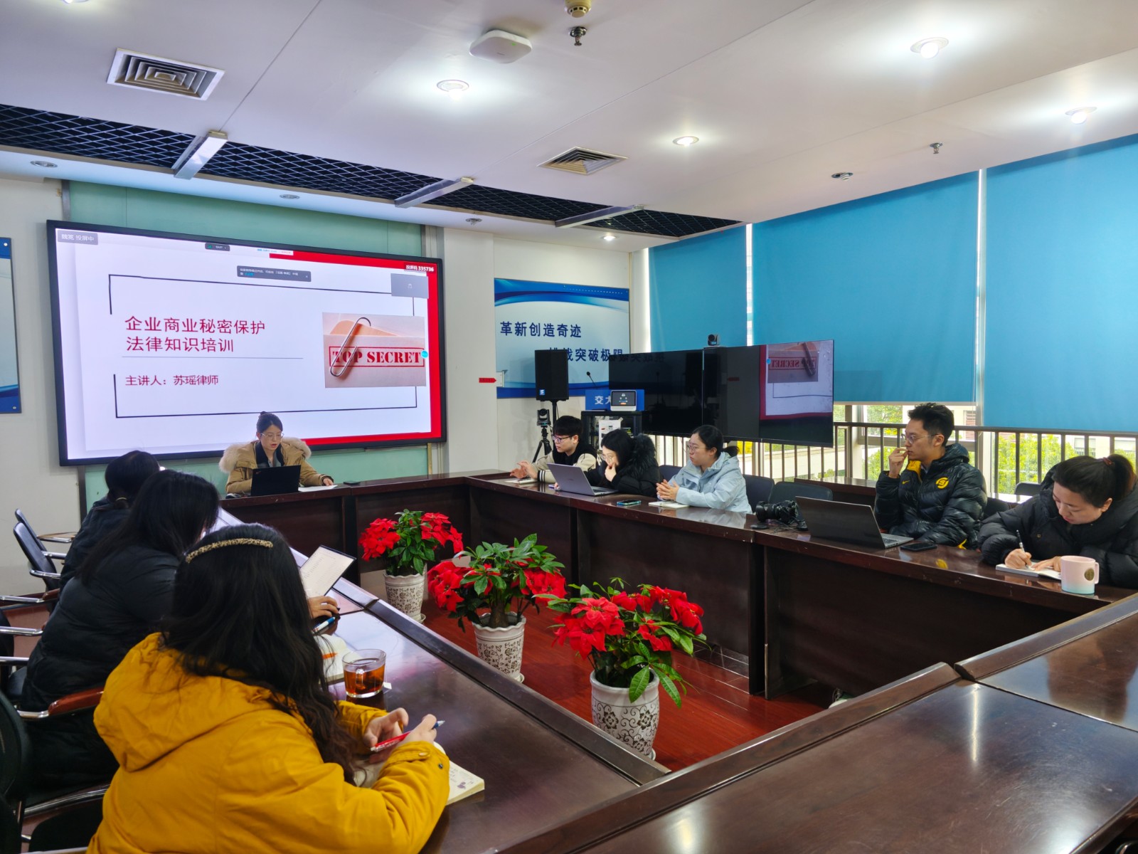 本次培訓(xùn)邀請公司常年法律顧問律師蘇瑤主講,她首先解讀憲法基本精神和特征,著重強(qiáng)調(diào)了民主、法治、人權(quán)三大核心價(jià)值,以及在推動(dòng)國家治理體系和治理能力現(xiàn)代化方面的重要作用。在商業(yè)秘密保護(hù)方面,律師從定義、范圍、保護(hù)措施等入手,緊密結(jié)合企業(yè)管理實(shí)際特點(diǎn),通過案例分析商業(yè)秘密泄露的常見途徑和后果,詳細(xì)介紹了如何建立完善商業(yè)秘密保護(hù)體系。在信息安全方面,律師結(jié)合《中華人民共和國網(wǎng)絡(luò)安全法》《中華人民共和國個(gè)人信息保護(hù)法》等法律法規(guī),從個(gè)人信息安全防護(hù)意識培養(yǎng)、辦公環(huán)境中信息安全實(shí)踐、網(wǎng)絡(luò)攻擊防范與應(yīng)急響應(yīng)策略、法律法規(guī)遵循與合規(guī)性要求進(jìn)行解析,對如何提高公司信息安全能力提出專業(yè)意見。