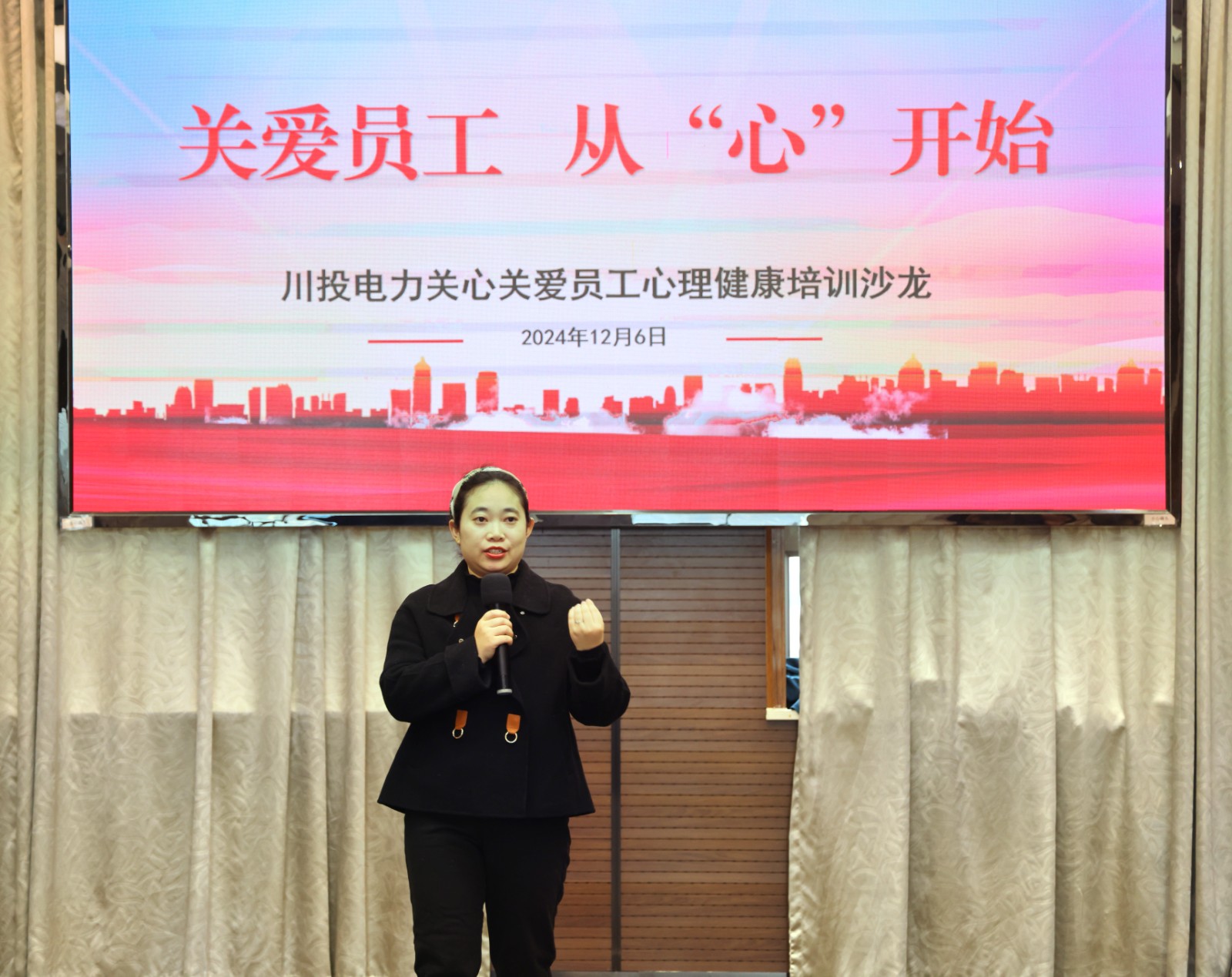 按照川投電力公司“四季暖陽”員工關愛行動工作部署,為提高員工心理素質,保持良好狀態(tài),提高工作效率,增強企業(yè)凝聚力和競爭力,近日,川投電力公司人力資源部、工會辦公室組織開展了關心關愛員工心理健康培訓沙龍,為本部員工送去冬日的溫暖。