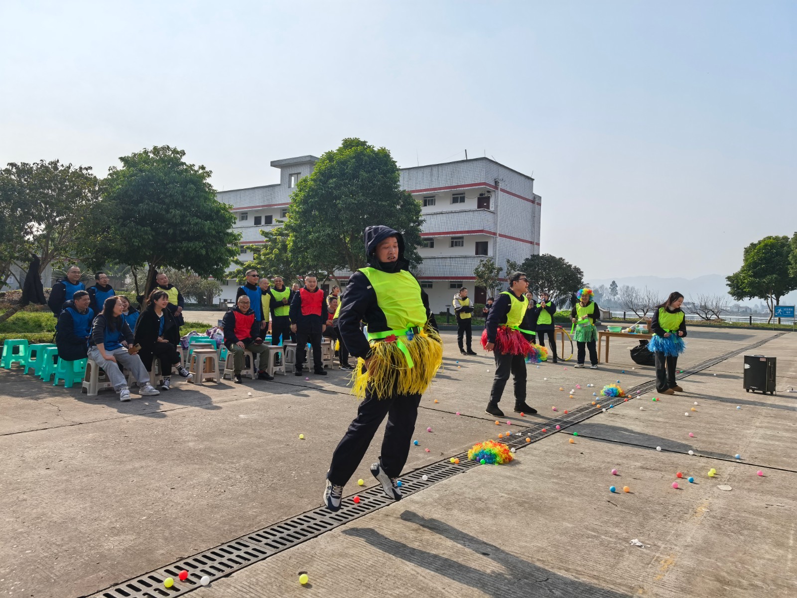 本次游園會設置了多個充滿趣味與挑戰(zhàn)的運動項目。在“齊心協(xié)力運球”項目中,參與者用前胸后背夾住氣球向前運送到終點,選手們緊密配合,步伐一致,在保證氣球不落地的前提下快速前進?!肮u下蛋”項目展現(xiàn)了職工們的活力與敏捷,“運送面粉”項目,無疑是一個考驗團隊合作與策略規(guī)劃的精彩項目,面粉被風吹散或是隊友間傳遞時忍俊不禁的畫面,更是將活動現(xiàn)場氣氛推向了高潮,歡呼聲、助威聲、惋惜聲此起彼伏。