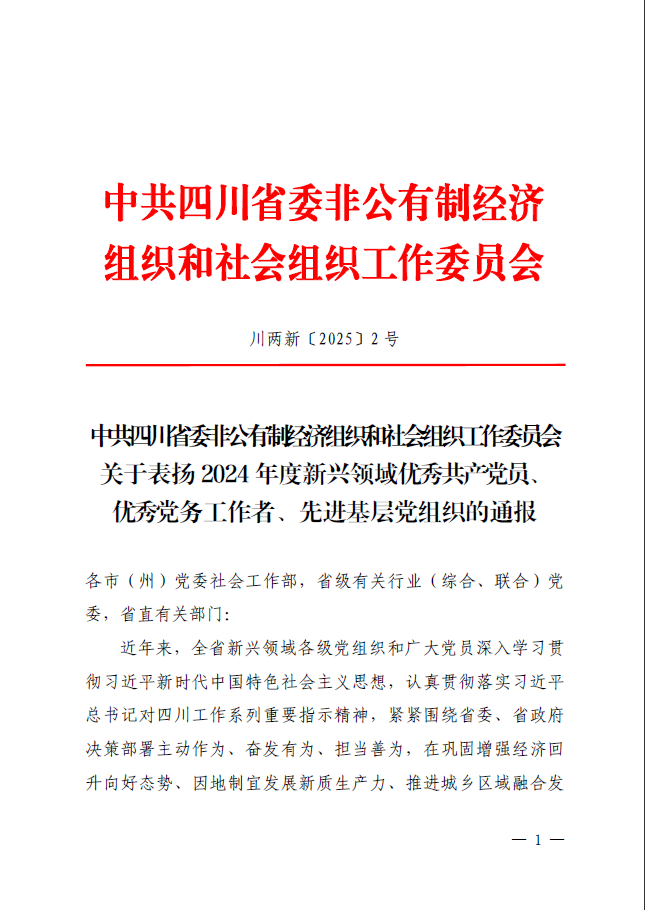 近日,中共四川省委非公有制經(jīng)濟(jì)組織和社會(huì)組織工作委員會(huì)印發(fā)《關(guān)于表揚(yáng)2024年度新興領(lǐng)域優(yōu)秀共產(chǎn)黨員、優(yōu)秀黨務(wù)工作者、先進(jìn)基層黨組織的通報(bào)》,川投能源黨委交大光芒黨總支獲評(píng)“四川省2024年度新興領(lǐng)域先進(jìn)基層黨組織”稱號(hào)。