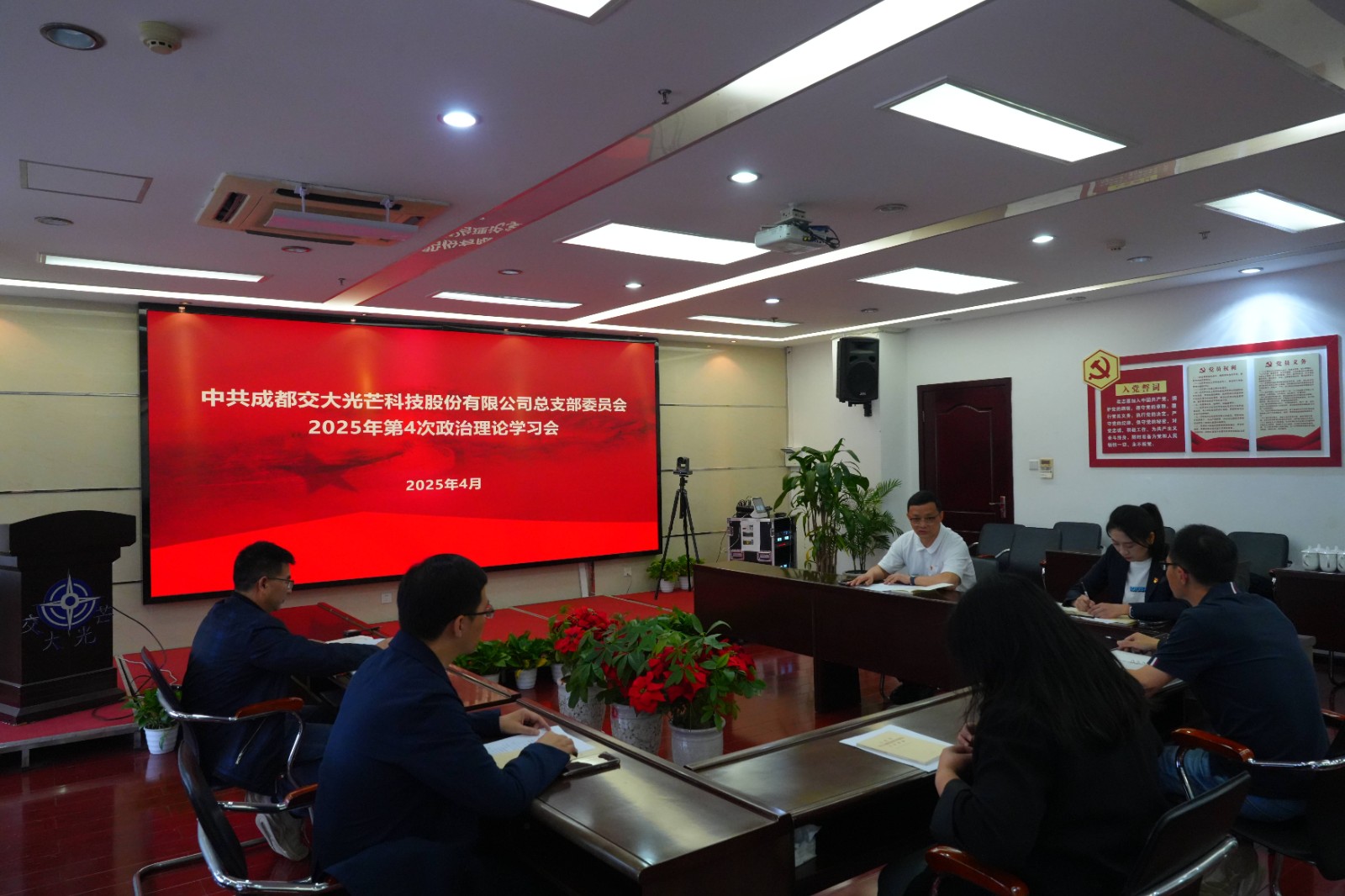 2025年4月27日至29日,交大光芒黨總支召開2025年第4次政治理論學(xué)習(xí)會(huì),深入學(xué)習(xí)貫徹習(xí)近平總書記關(guān)于加強(qiáng)黨的作風(fēng)建設(shè)的重要論述和中央八項(xiàng)規(guī)定及其實(shí)施細(xì)則精神等內(nèi)容,會(huì)議由黨總支書記、常務(wù)副總經(jīng)理王濤主持,黨總支委員及經(jīng)營(yíng)班子成員參加學(xué)習(xí)會(huì)。