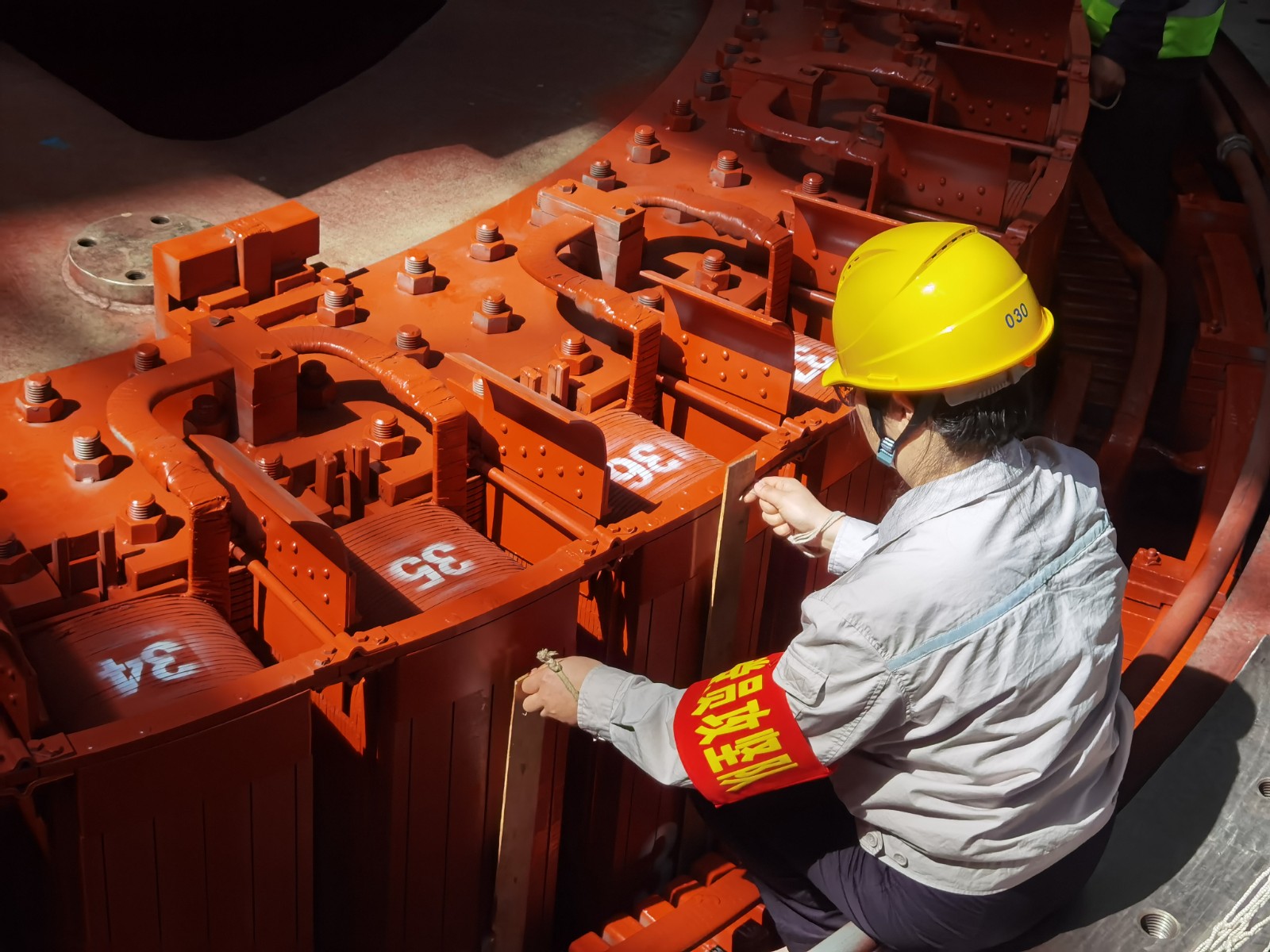 “這‘硬骨頭’我來(lái)啃,請(qǐng)組織放心,堅(jiān)決完成任務(wù)”。4月16日,轉(zhuǎn)子回裝過程中,老黨員宋加行發(fā)揚(yáng)新時(shí)代工匠精神,主動(dòng)承擔(dān)高風(fēng)險(xiǎn)、高技術(shù)含量的司索崗位,他哨音清晰、手勢(shì)果斷,與起重司機(jī)配合如“榫卯銜接”。檢修團(tuán)隊(duì)成員分工明確、協(xié)同配合,確保轉(zhuǎn)子回裝工作按期順利完成。