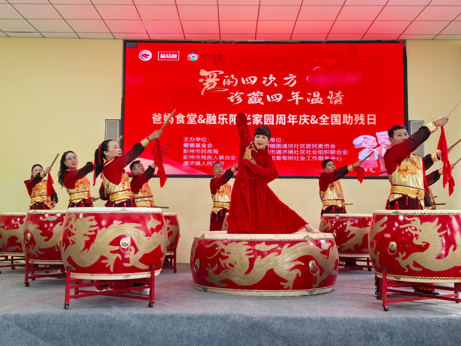 5月16日,在彭州市通濟(jì)鎮(zhèn)圓通壩社區(qū)“爸媽食堂”4周年慶暨全國(guó)助殘日活動(dòng)現(xiàn)場(chǎng),天彭電力理論宣講隊(duì)隊(duì)員以一場(chǎng)氣勢(shì)恢宏的非遺大鼓《盛世凱歌》拉開慶典帷幕,不僅展現(xiàn)了國(guó)企參與基層治理的創(chuàng)新實(shí)踐,更奏響了文化惠民與鄉(xiāng)村振興的協(xié)奏曲。