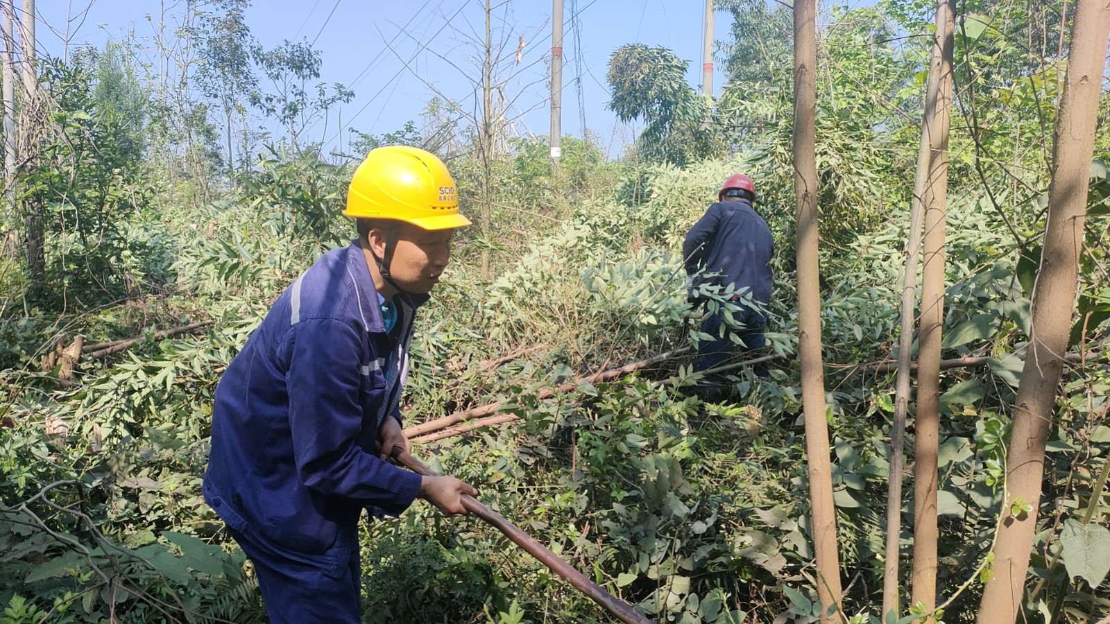 高奉山電廠位于四川盆地西南邊緣的洪雅縣,這里年降雨量1385毫米,電廠的送出線路有80%跨越或臨近林區(qū)。97基桿塔如星辰般散落在3個鄉(xiāng)鎮(zhèn)、12個村落構成的30多公里線路上。位置最為深入的鐵塔,電廠維護人員從早上8時出發(fā)上山,要一直到下午才能到達,他們徒步前行,一步步踩出“保電長征”的印記。