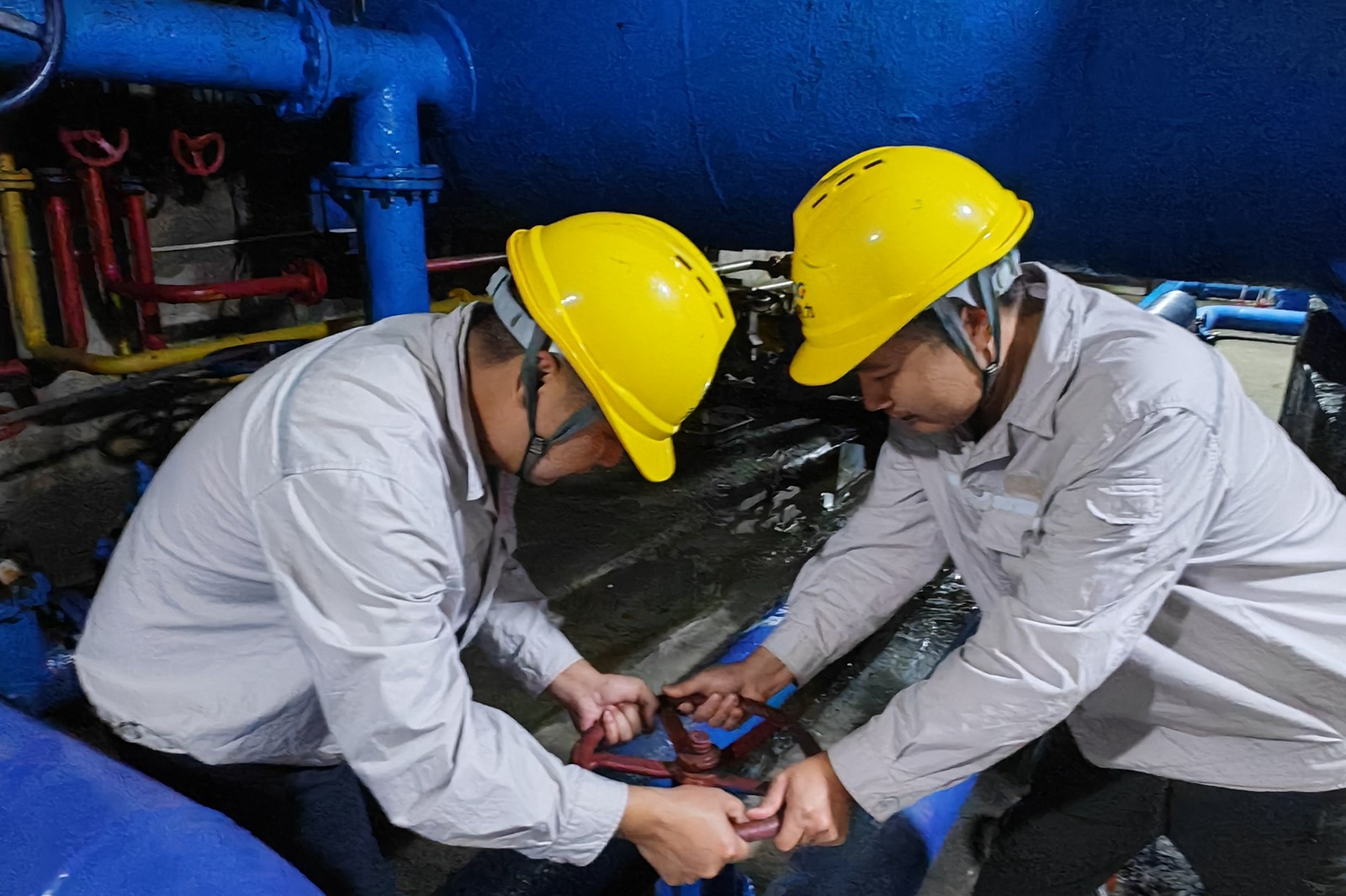 面對持續(xù)高溫天氣嚴峻考驗,運維人員為保障機組、設備等的安全穩(wěn)定運行也是夜以繼日、殫精竭慮。勤巡視:不懼炎夏烈日主動增加設備巡檢次數(shù),密切關注設備溫度、振動、異味等諸多細節(jié),重點檢查大電流設備的散熱情況,特別是對機組冷卻系統(tǒng)、主變壓器各電氣連接點等關鍵部位進行重點盯防,以高度責任心及時將設備缺陷查找消除在初起階段。排缺陷:為解決洪水期間水質差降低冷卻水系統(tǒng)工況的問題,運維人員認真做好冷卻水水質、流量、溫度檢查及水壓監(jiān)測,根據(jù)水質情況即時調整冷卻水壓力,在水質較差時加大水壓,并通過冷卻水反沖等方式清理管道防范堵塞,必要時增設臨時冷卻裝置,防止溫度過高引發(fā)安全事故。通過多管齊下嚴密防范,主設備超溫報警次數(shù)同比減少80%,保障主設備在40℃環(huán)境溫度下仍能平穩(wěn)運行,開得起、頂?shù)蒙?、穩(wěn)得住。